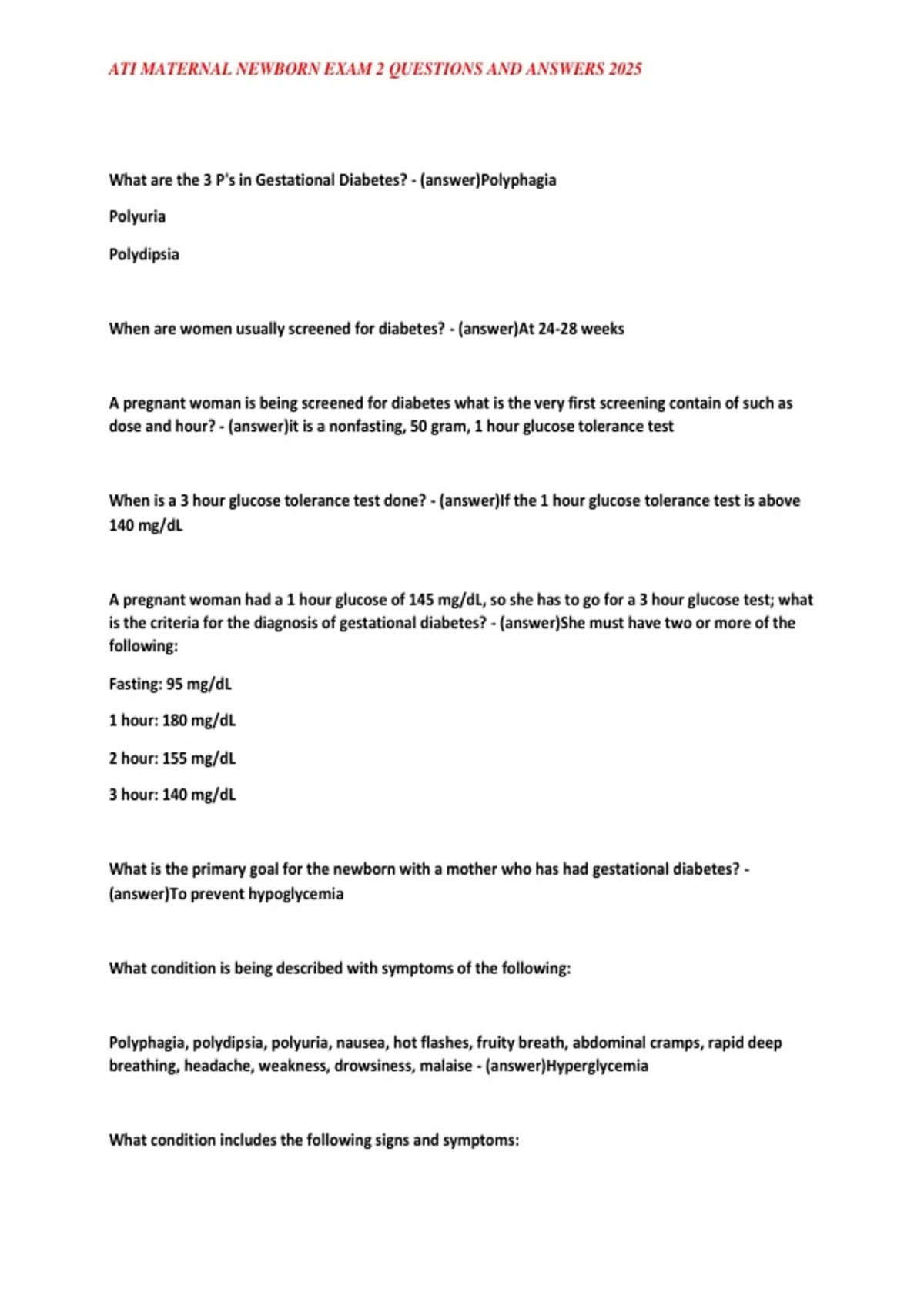 ,ATI MATERNAL NEWBORN EXAM 2 QUESTIONS AND ANSWERS 2025