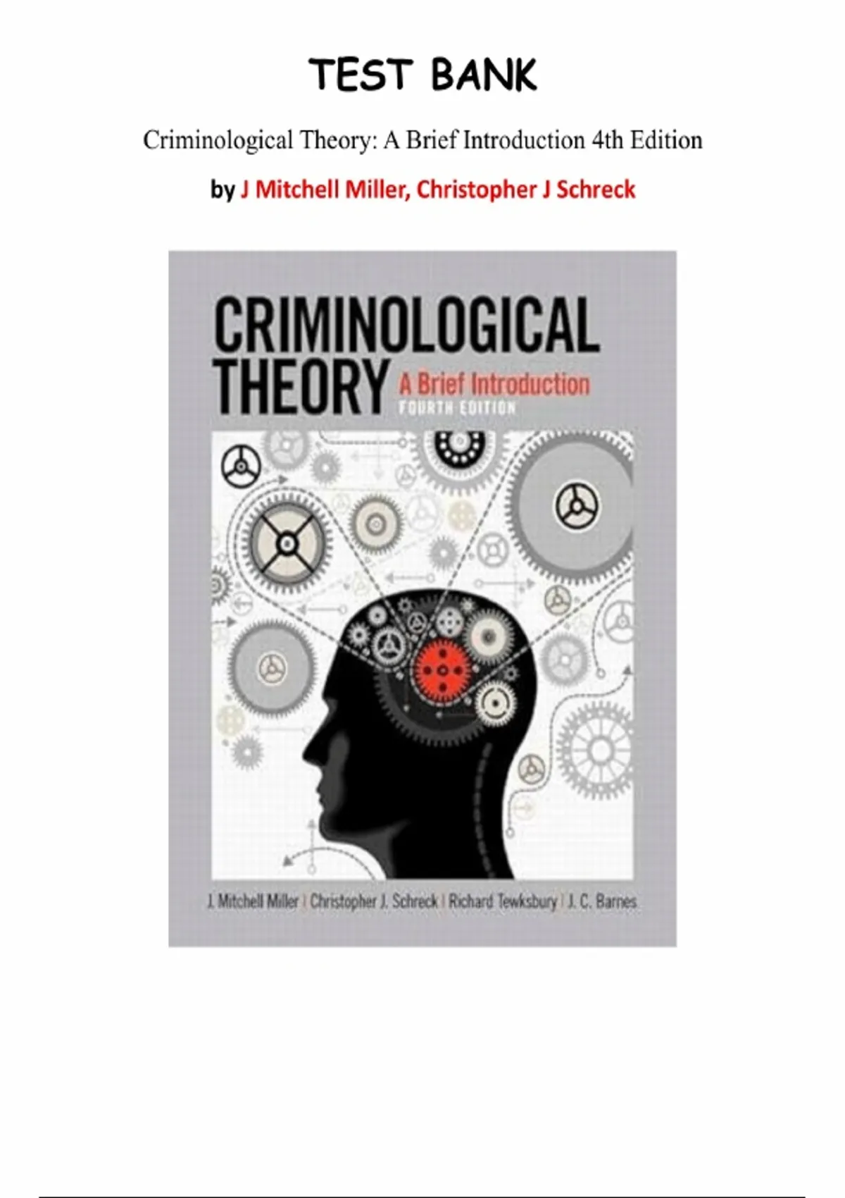 Criminological Theory: A Brief Introduction 4th Edition – J. Mitchell Miller | Test Bank Chapters 1–10 | Complete Exam Questions & Verified Answers | Latest Update....1. Theoretical Criminology, 2. Classical and Neoclassical Criminology, 3. Biosocial Theories of Crime, 4. Psychological Theories of Crime, 5. Social Ecology of Crime, 6. Learning and Cultural Transmission Theories of Crime, 7. Strain Theories of Crime, 8. Control Theories of Crime, 9. Theories of Social Conflict, 10. Evaluating and Integrating Theory