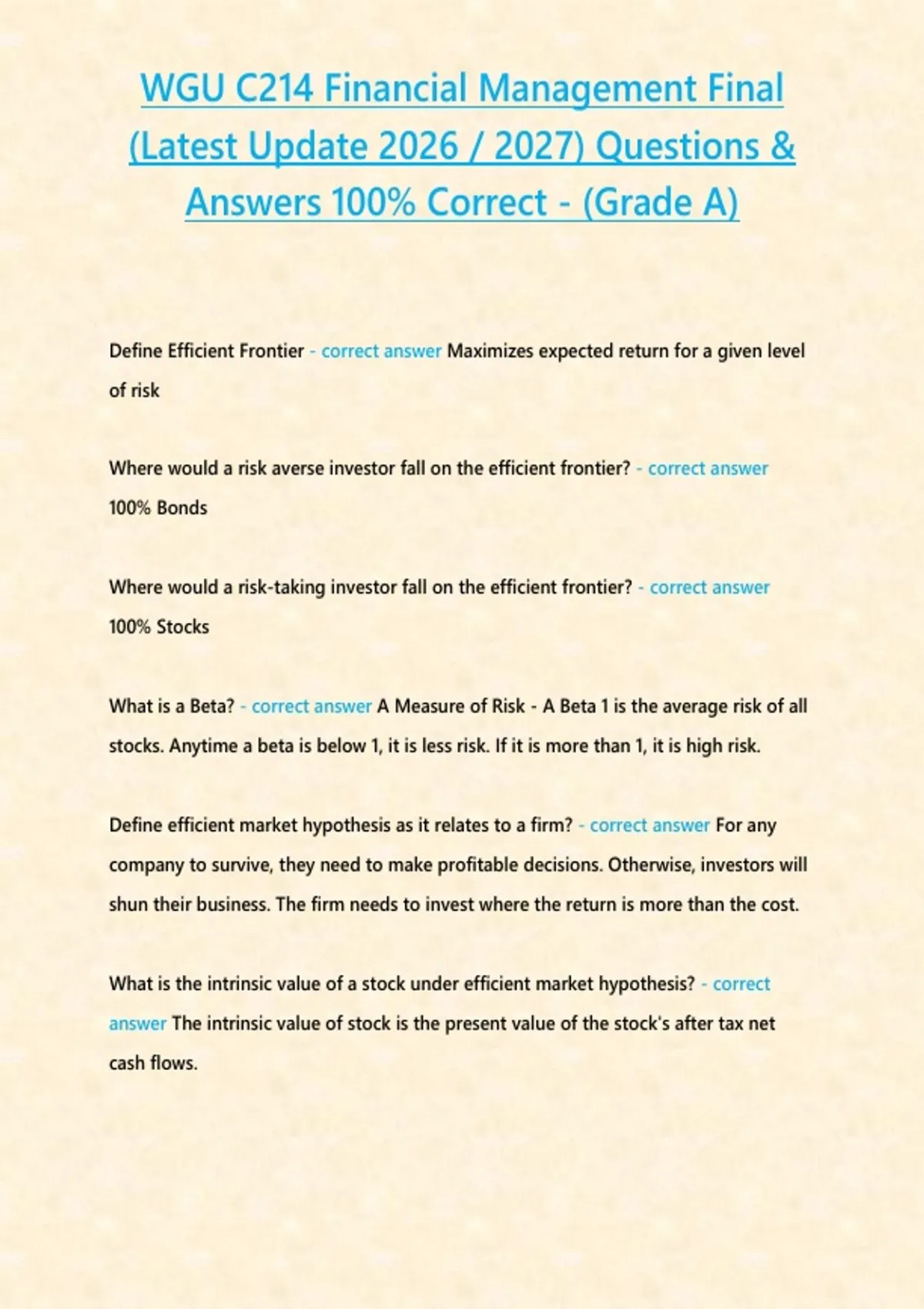 What is a Beta? - correct answer A Measure of Risk - A Beta 1 is the average risk of all
