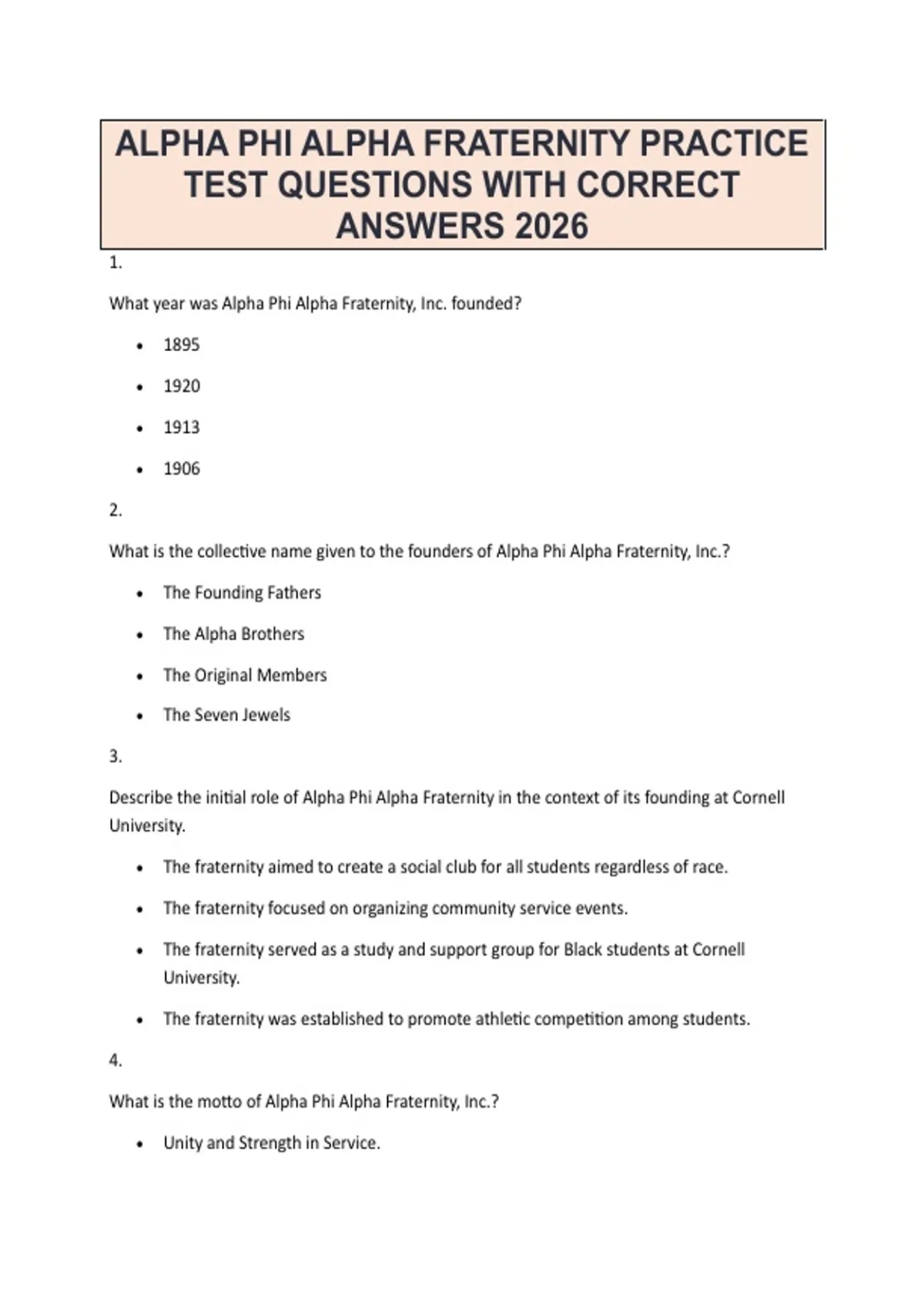 ALPHA PHI ALPHA FRATERNITY PRACTICE TEST QUESTIONS WITH CORRECT ANSWERS 2026