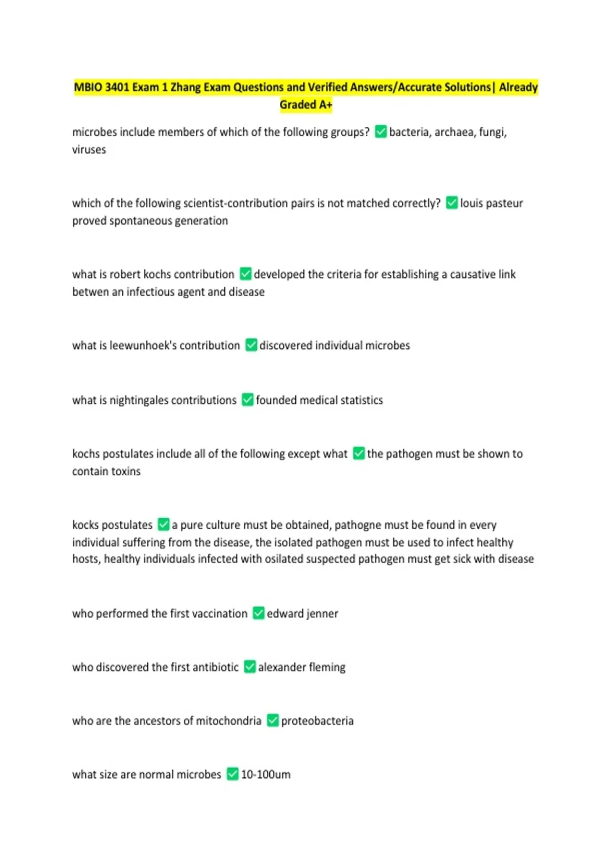 MBIO 3401 Exam 1 Zhang Exam Questions and Verified Answers/Accurate Solutions| Already