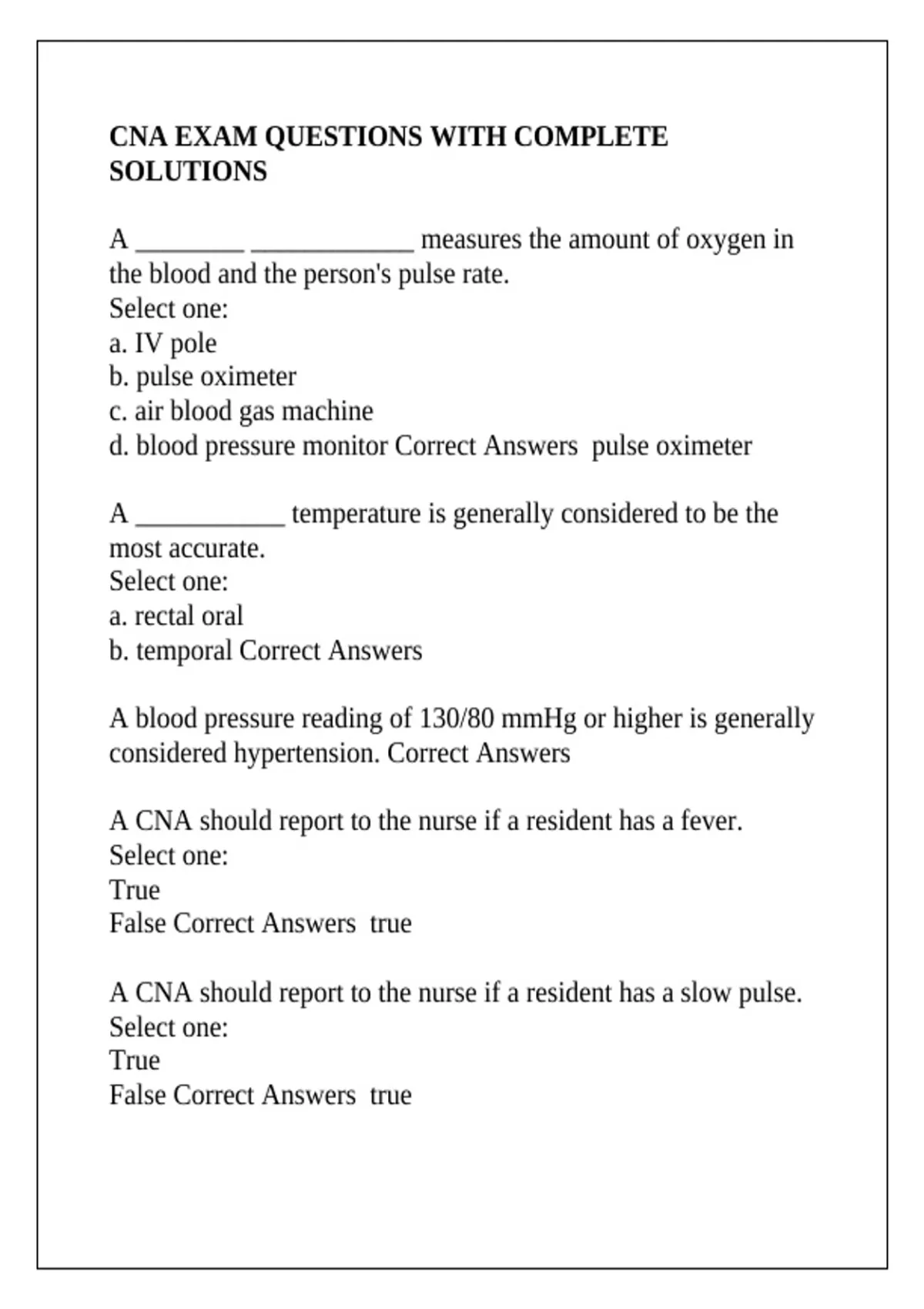 CNA EXAM QUESTIONS WITH COMPLETE SOLUTIONS