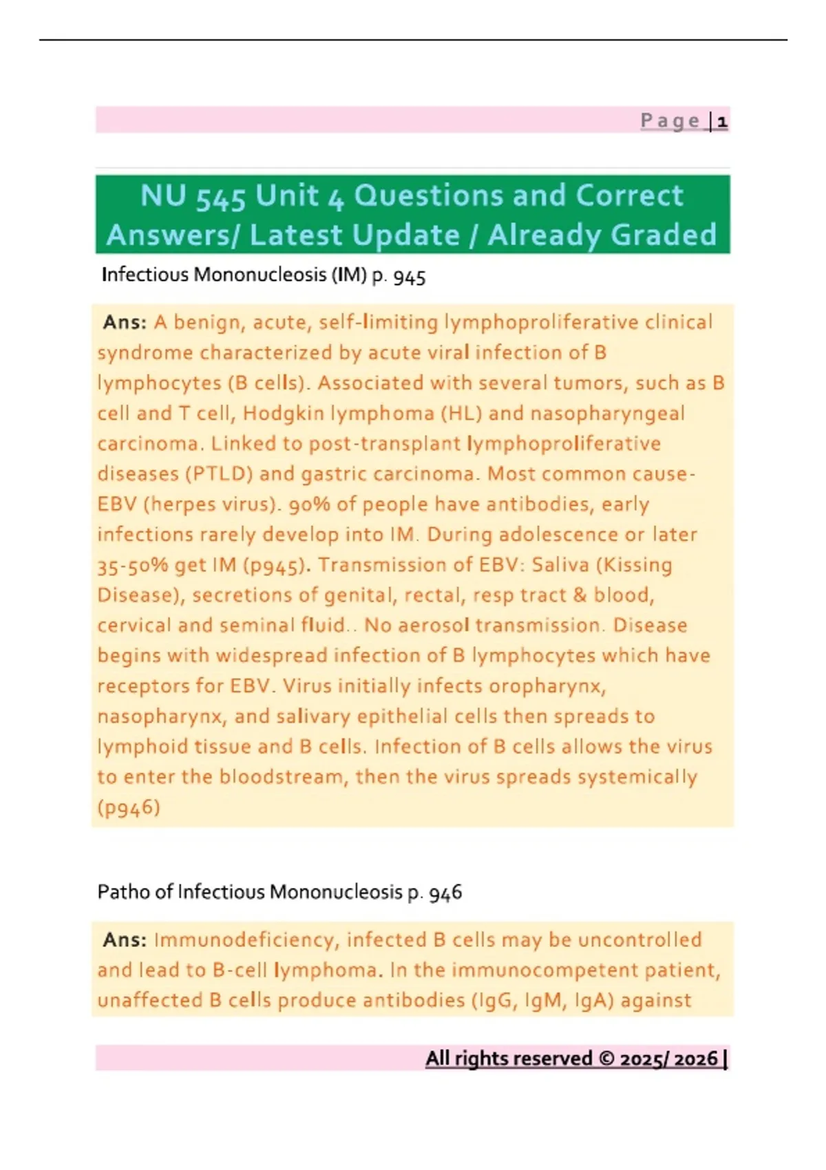 NU 545 Unit 4 Questions and Correct Answers/ Latest Update / Already Graded A+