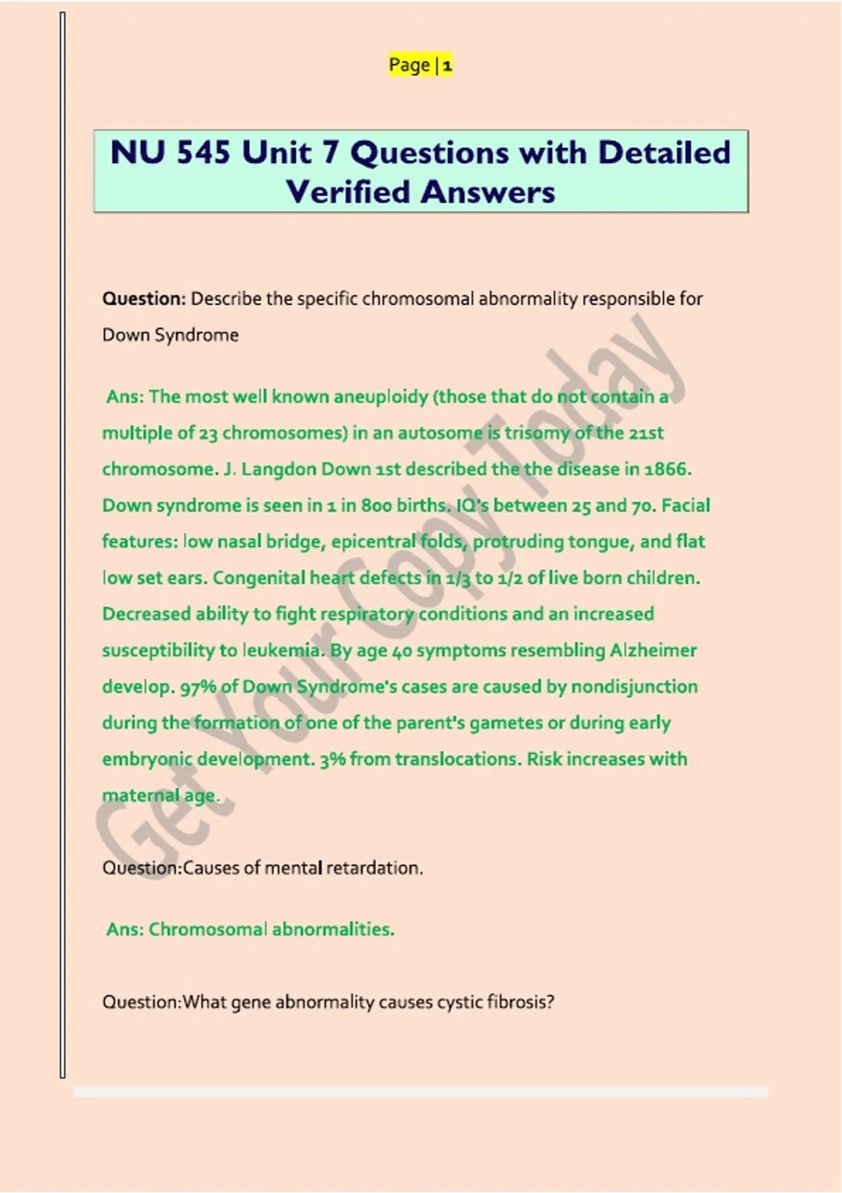 NU 545 Unit 7 Questions with Detailed Verified Answers