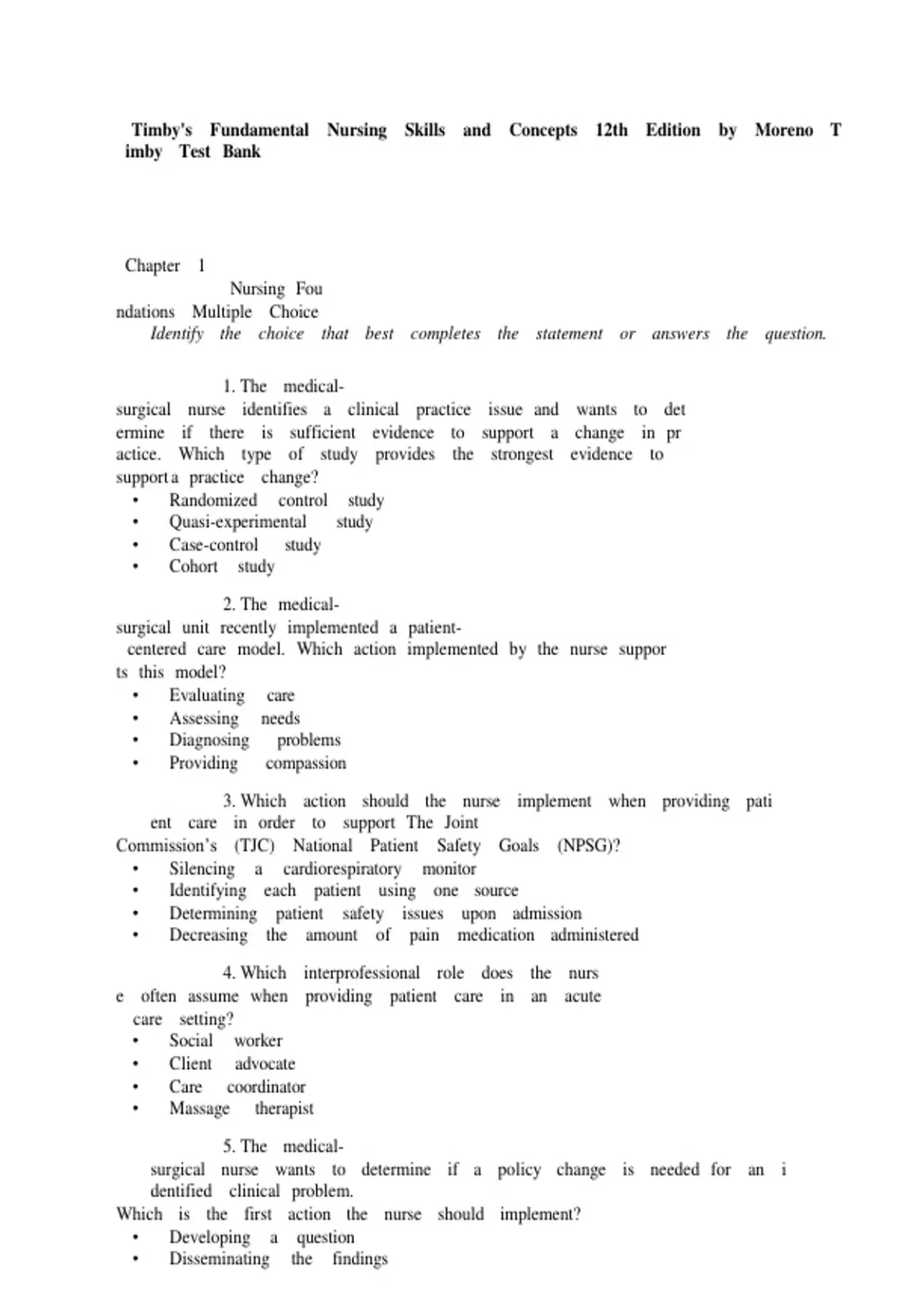 TEST BANK for Timby's Fundamental Nursing Skills and Concepts 12th Edition by Loretta A Donnelly-Moreno, Chapters 1 - 38 Complete