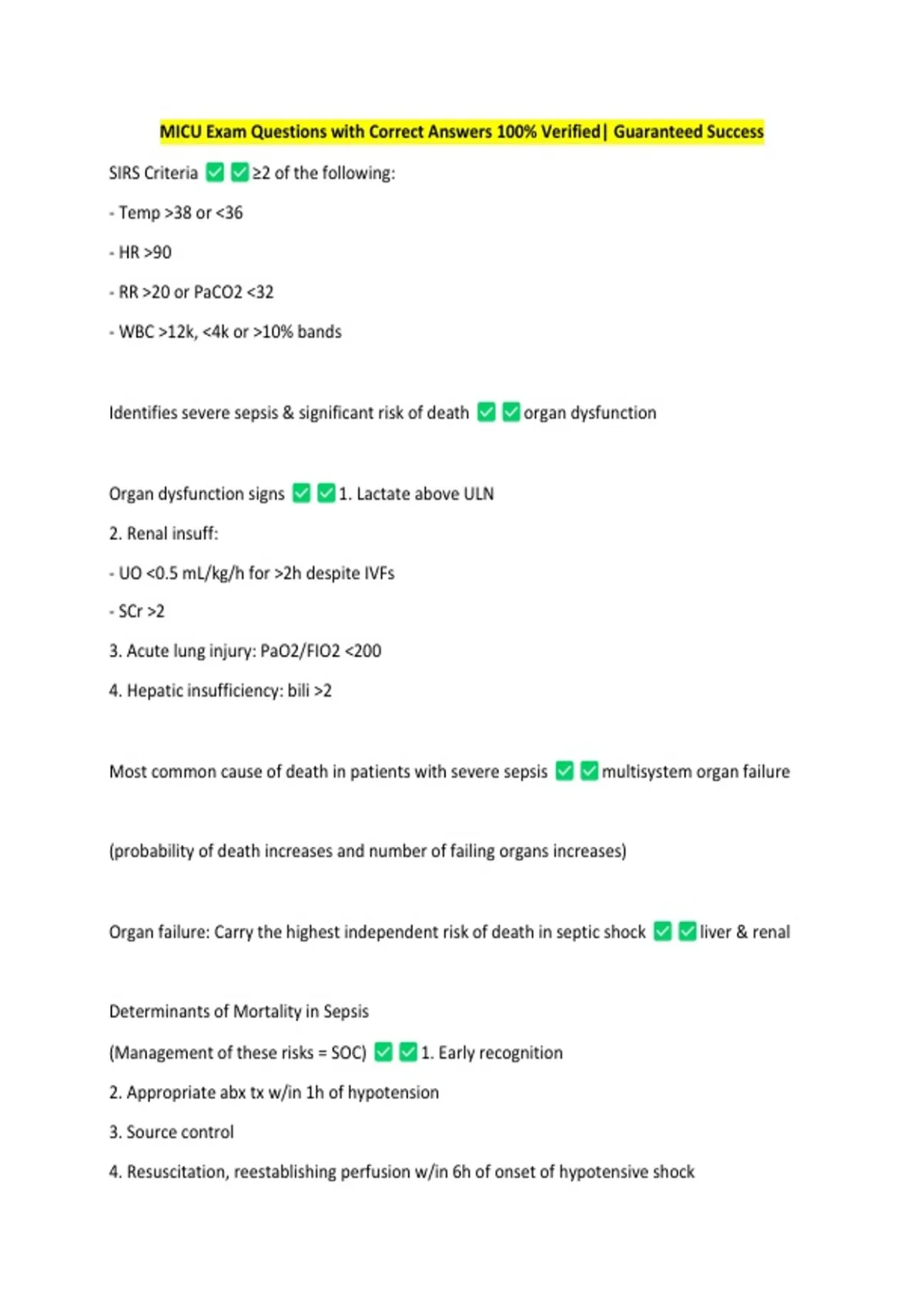 MICU Exam Questions with Correct Answers 100% Verified| Guaranteed Success