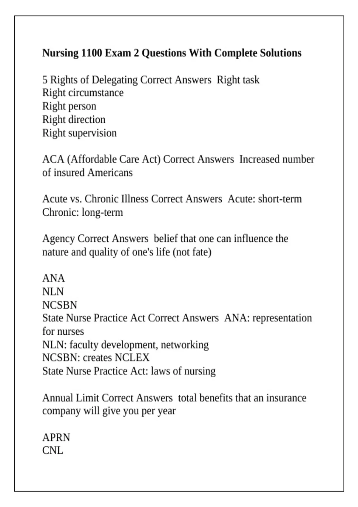 Nursing 1100 Exam 2 Questions With Complete Solutions