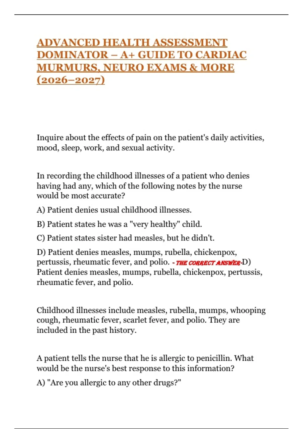 penicillin." - THE CORRECT ANSWER-D) "Please describe what