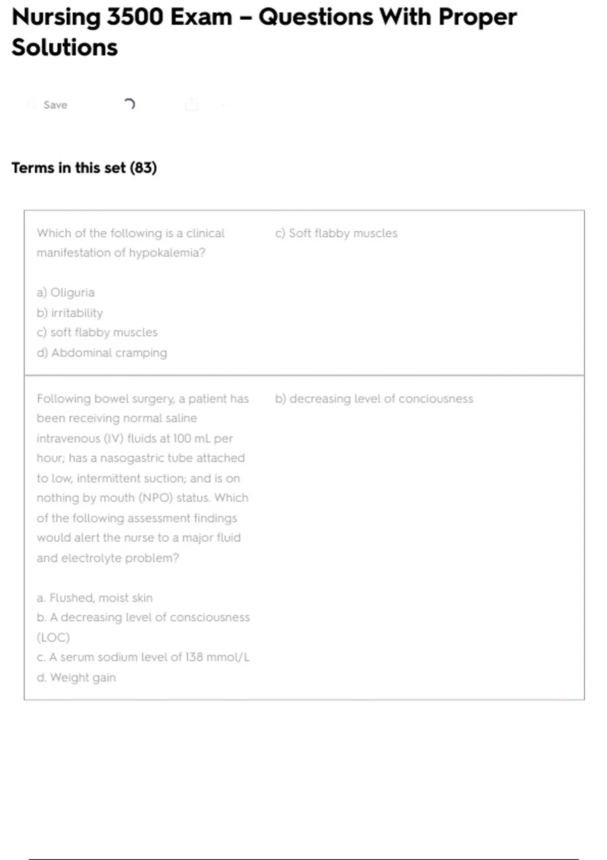 Following bowel surgery, a patient has b) decreasing level of conciousness