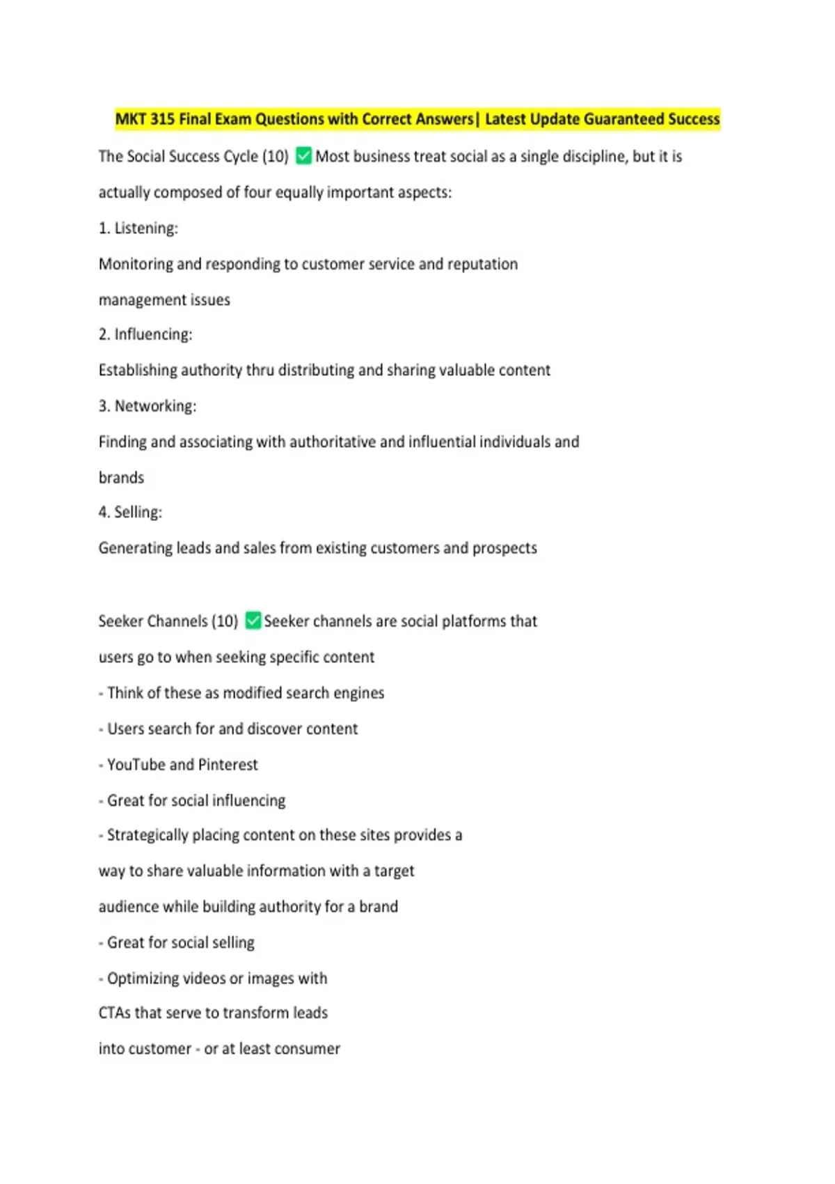MKT 315 Final Exam Questions with Correct Answers| Latest Update Guaranteed Success