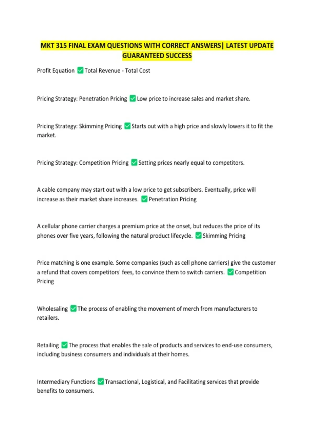 MKT 315 FINAL EXAM QUESTIONS WITH CORRECT ANSWERS| LATEST UPDATE