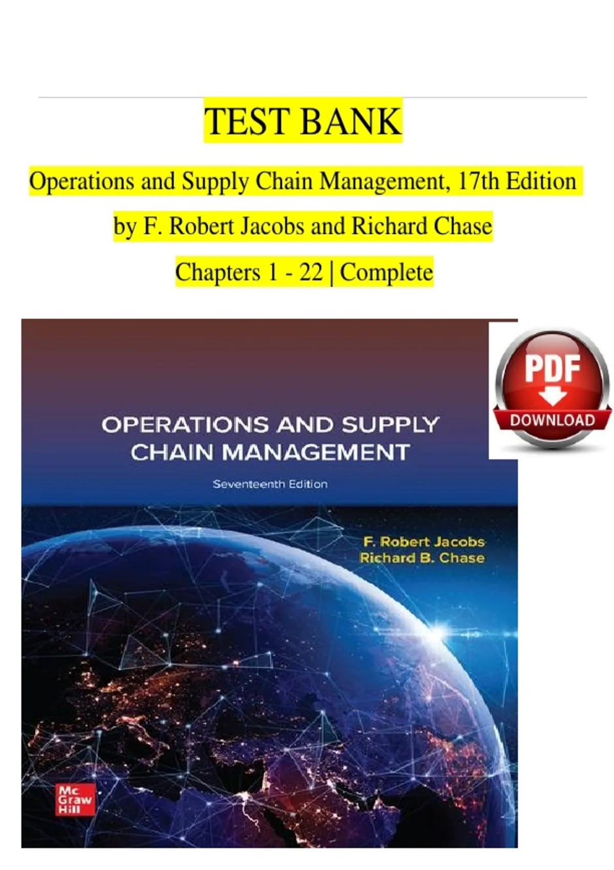 TEST BANK Operations and Supply Chain Management, 17th Edition by F. Robert Jacobs and Richard Chase Chapters 1 - 22 | Complete