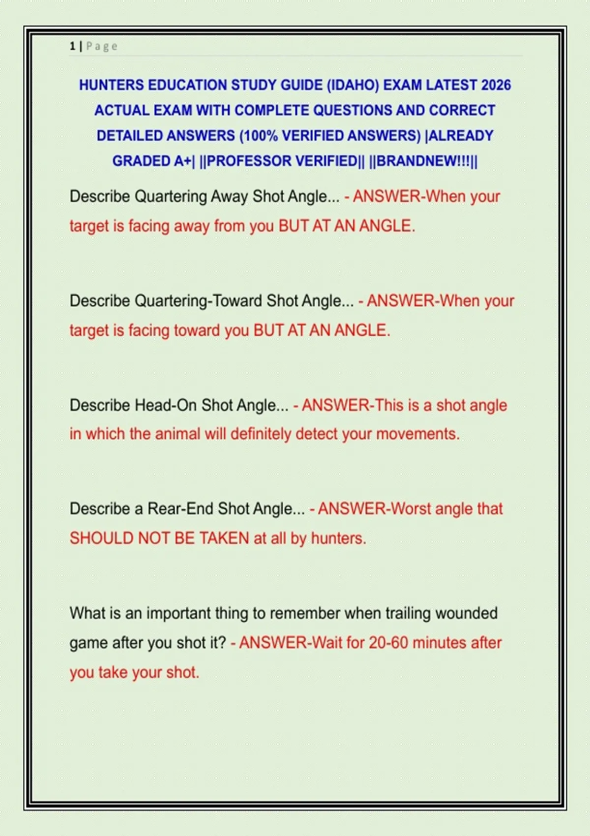 HUNTERS EDUCATION STUDY GUIDE (IDAHO) EXAM LATEST 2026