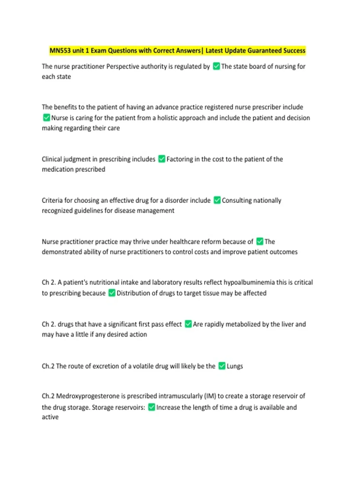 MN553 unit 1 Exam Questions with Correct Answers| Latest Update Guaranteed Success