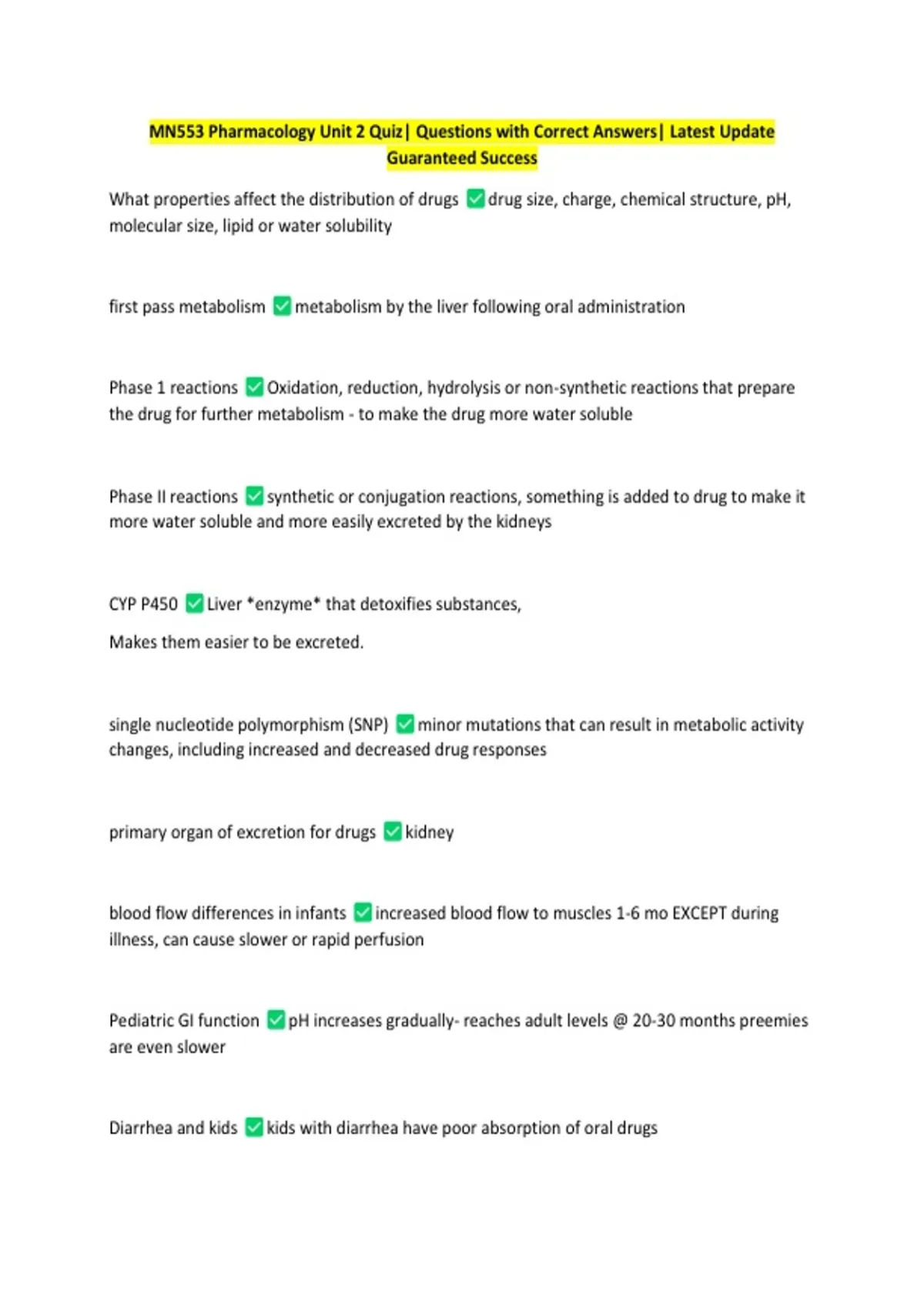 MN553 Pharmacology Unit 2 Quiz| Questions with Correct Answers| Latest Update