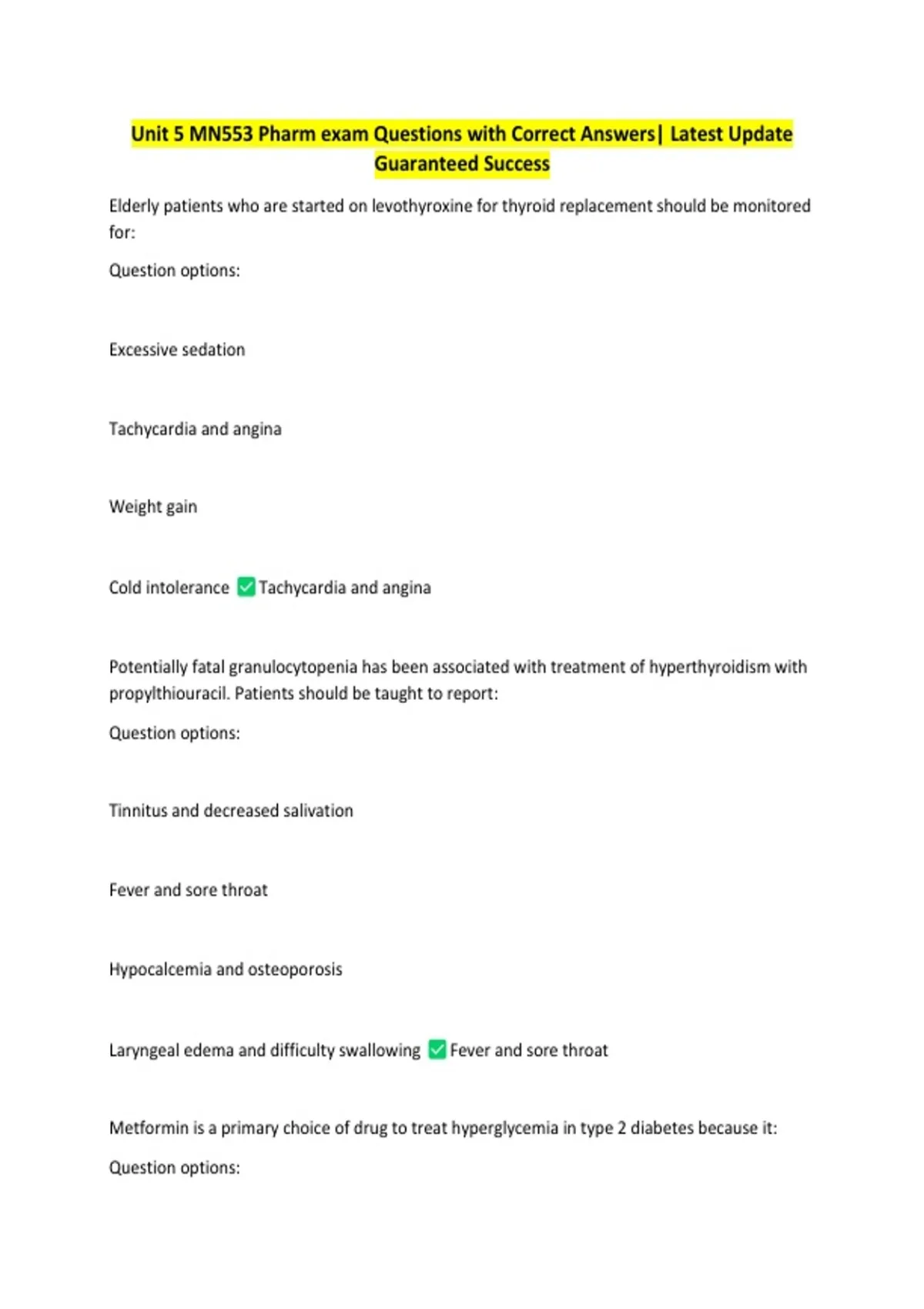 Unit 5 MN553 Pharm exam Questions with Correct Answers| Latest Update