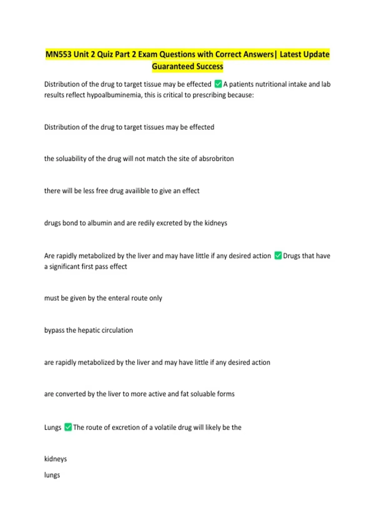 MN553 Unit 2 Quiz Part 2 Exam Questions with Correct Answers| Latest Update