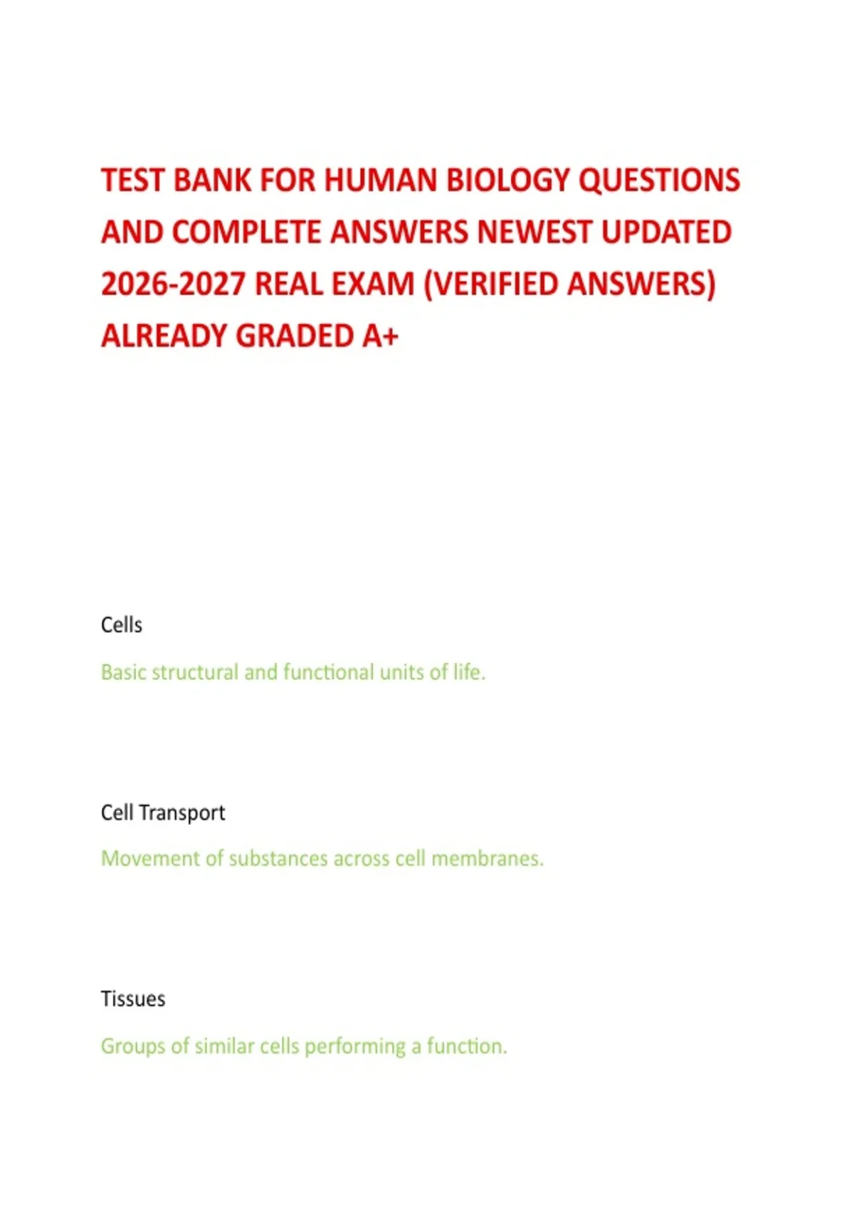 TEST BANK FOR HUMAN BIOLOGY QUESTIONS