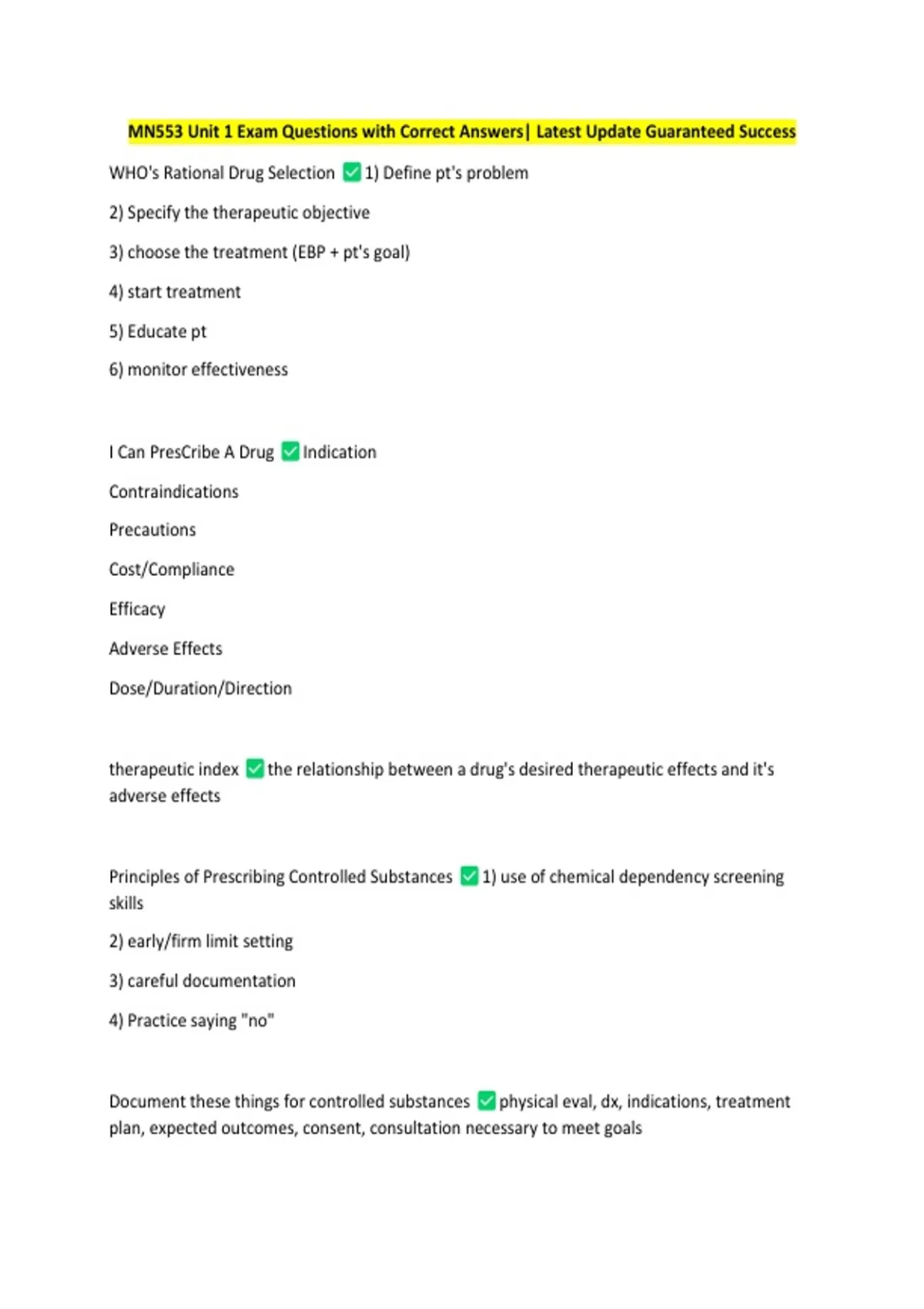 MN553 Unit 1 Exam Questions with Correct Answers| Latest Update Guaranteed Success