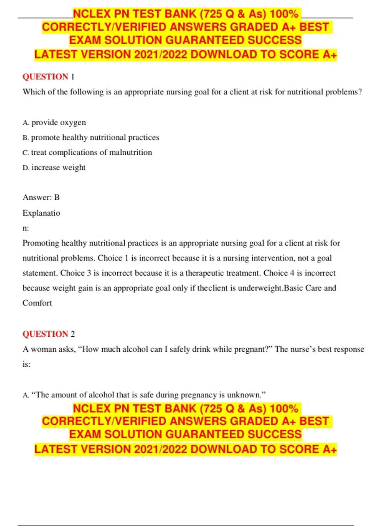 NCLEX PN TEST BANK (725 Q & As) 100%