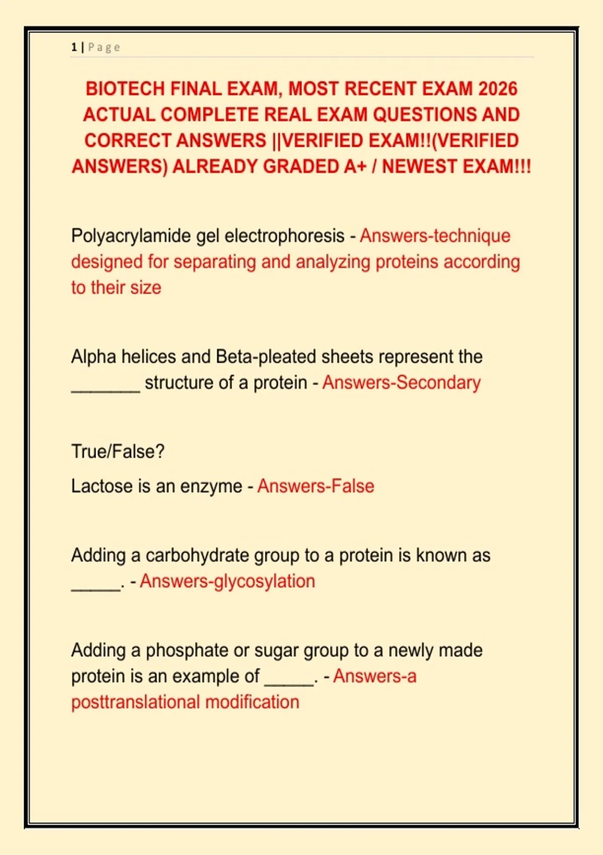 BIOTECH FINAL EXAM, MOST RECENT EXAM 2026