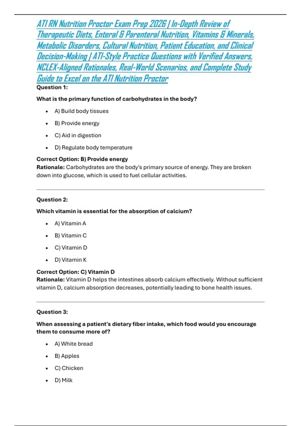 Rationale: Vitamin D helps the intestines absorb calcium effectively. Without sufficient