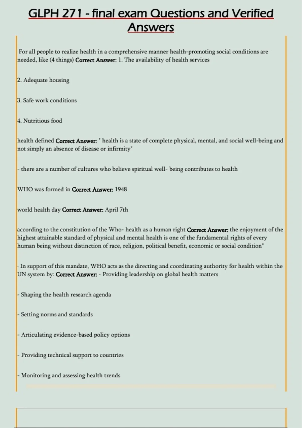 according to the constitution of the Who- health as a human right Correct Answer: the enjoyment of the