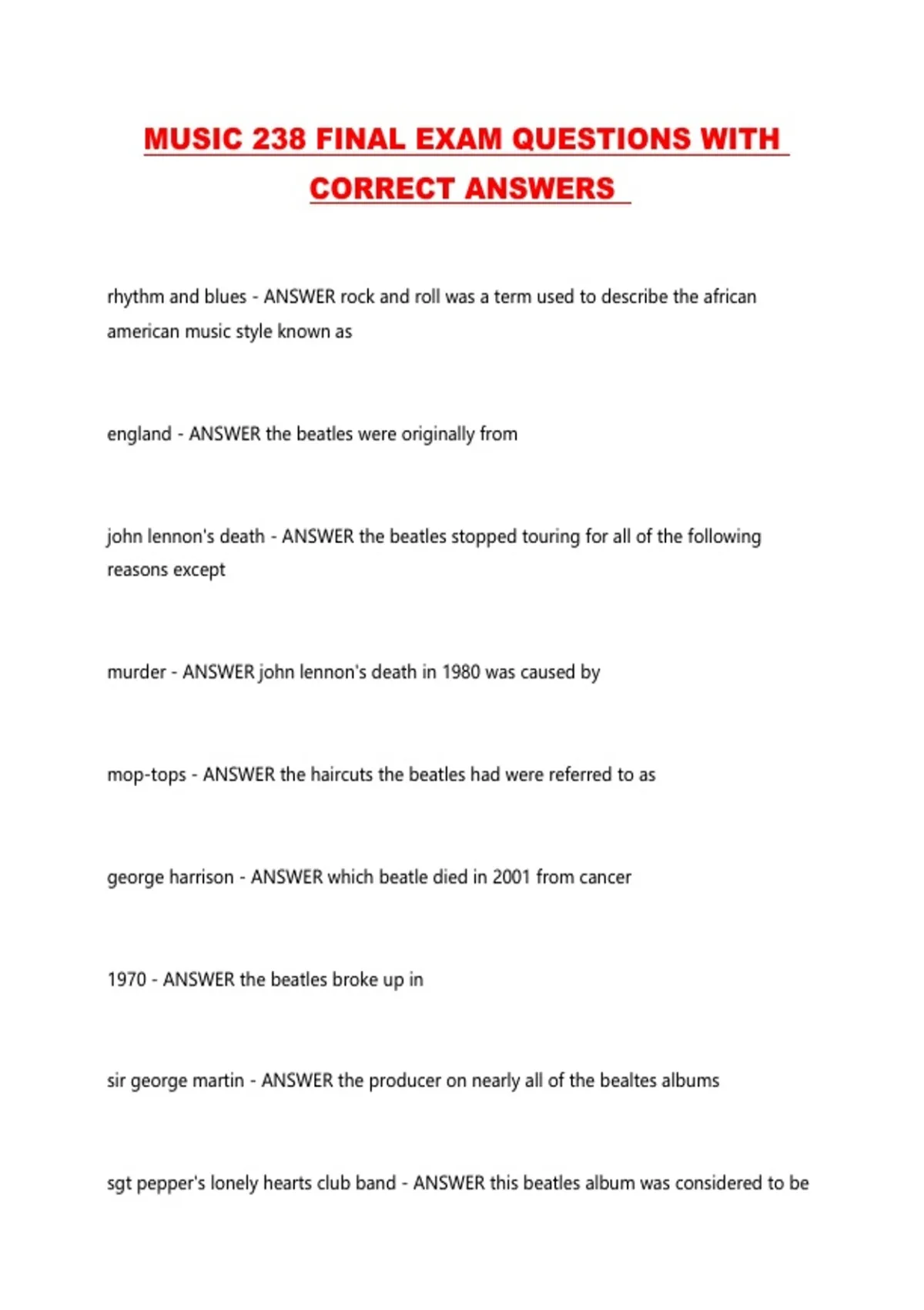 MUSIC 238 FINAL EXAM QUESTIONS WITH CORRECT ANSWERS ...