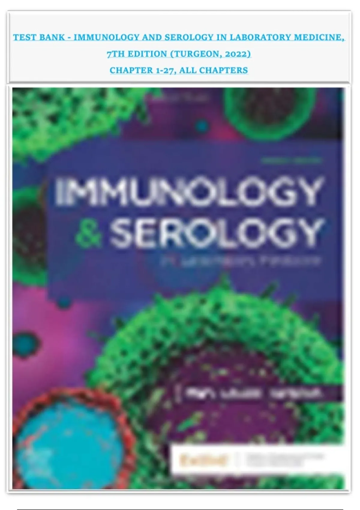 TEST BANK - IMMUNOLOGY AND SEROLOGY IN LABORATORY MEDICINE, 7TH EDITION (TURGEON, 2022) CHAPTER 1-27, ALL CHAPTERS