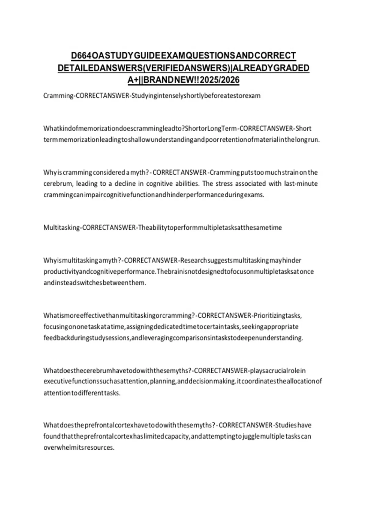 Cramming-CORRECTANSWER-Studyingintenselyshortlybeforeatestorexam