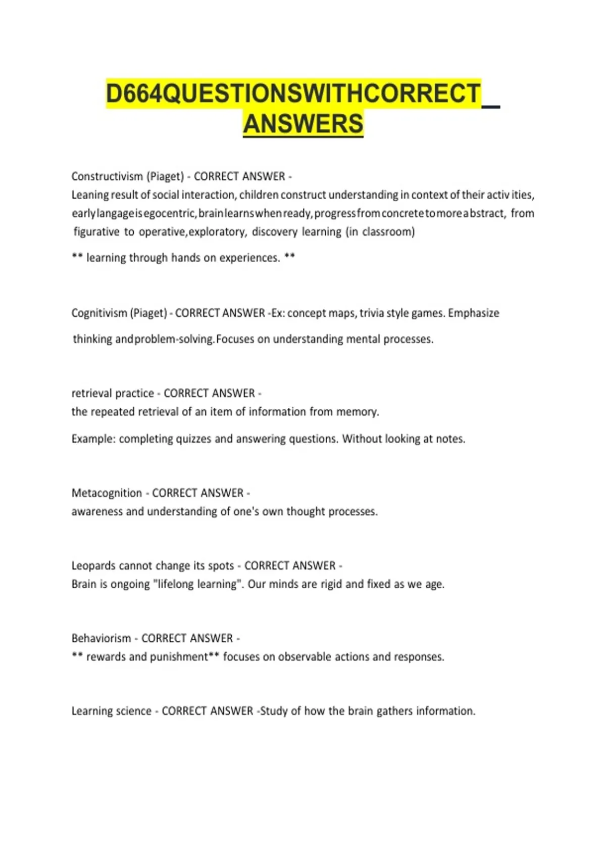 D664 QUESTIONS WITH CORRECT ANSWERS.