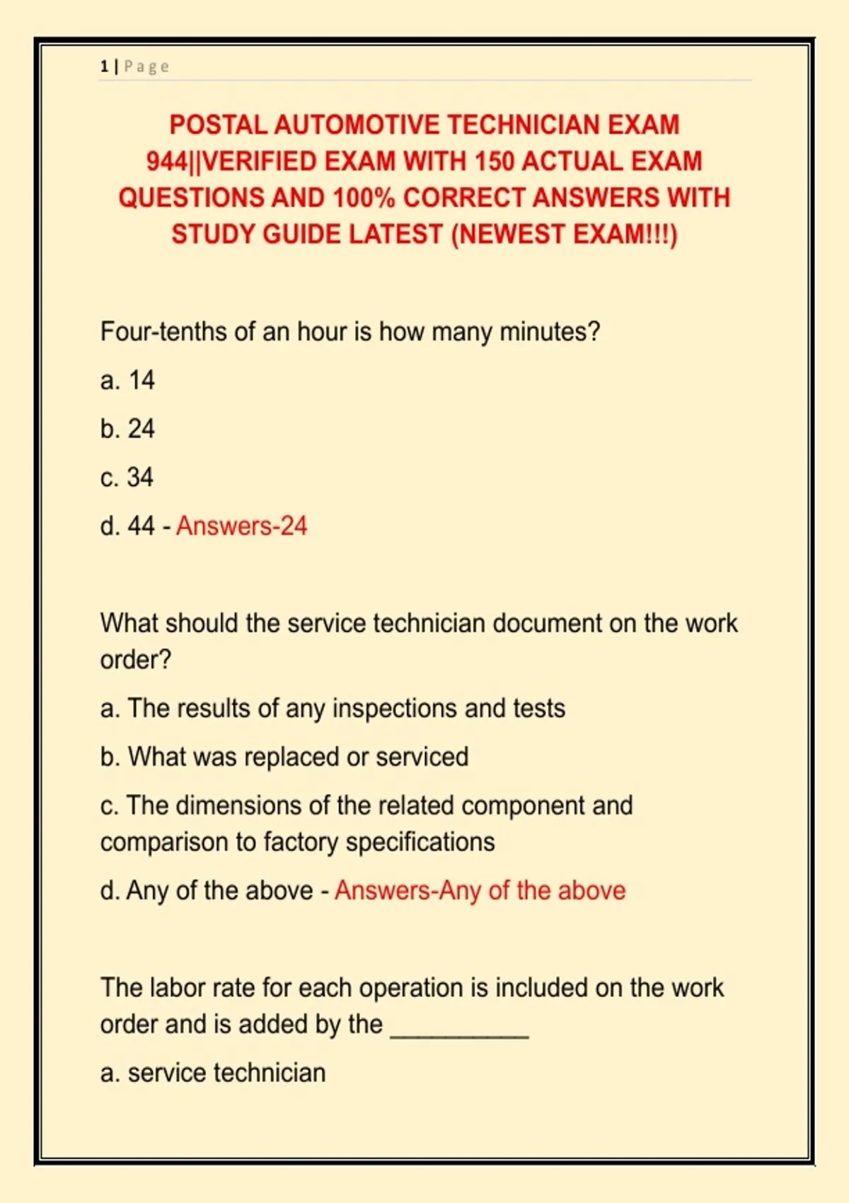 POSTAL AUTOMOTIVE TECHNICIAN EXAM