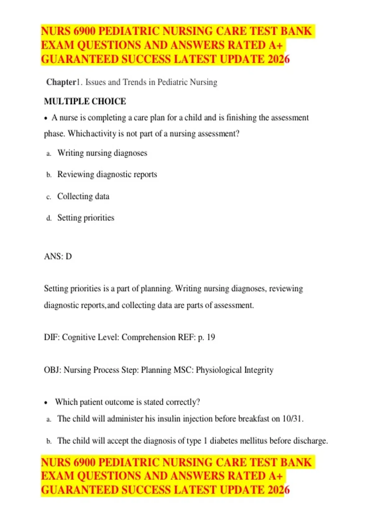 , NURS 6900 PEDIATRIC NURSING CARE TEST BANK