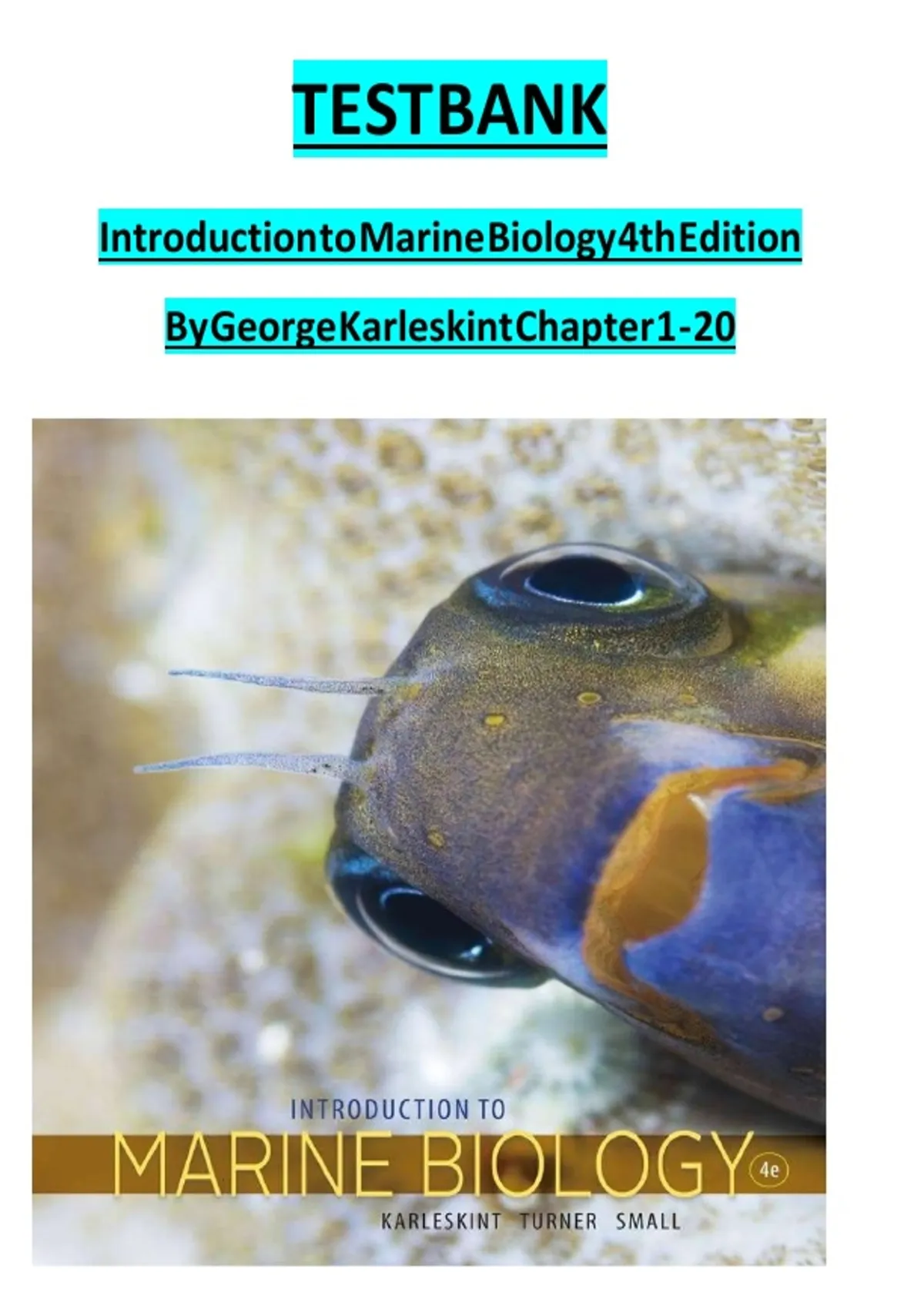 Test Bank for Introduction to Marine Biology 4th Edition by Karleskint. Questions & Answers. Chapters 1-20 Complete with All Correct Answer solutions!!