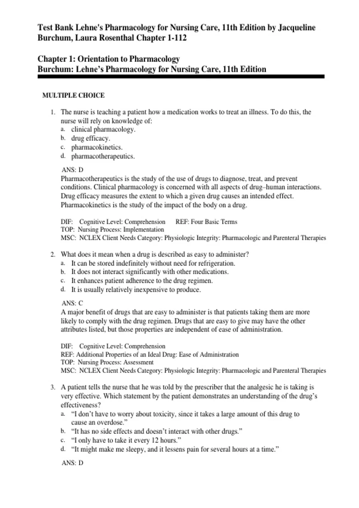 Test Bank for Lehne's Pharmacology for Nursing Care, 11th Edition by Jacqueline Burchum, Laura Rosenthal Chapter 1-112|Test Bank 100% Verified Answers