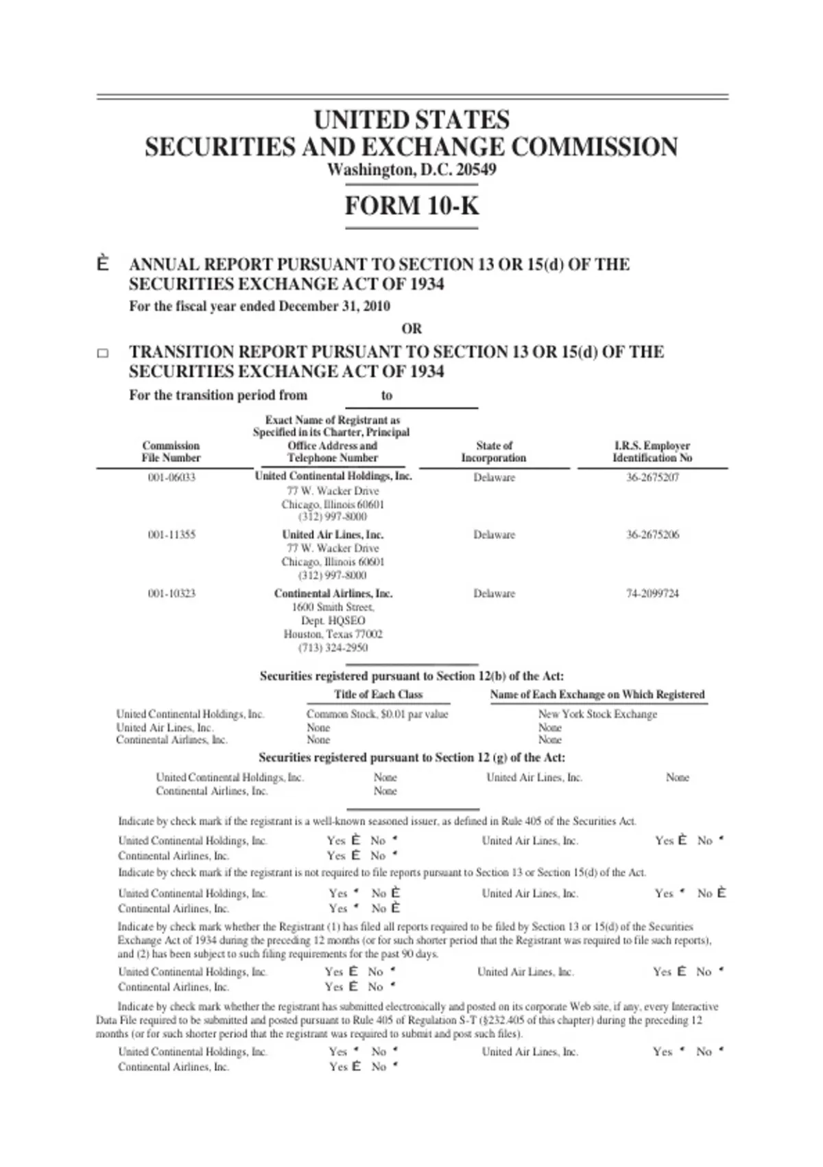 Continental Airlines, Inc. Yes È No ‘