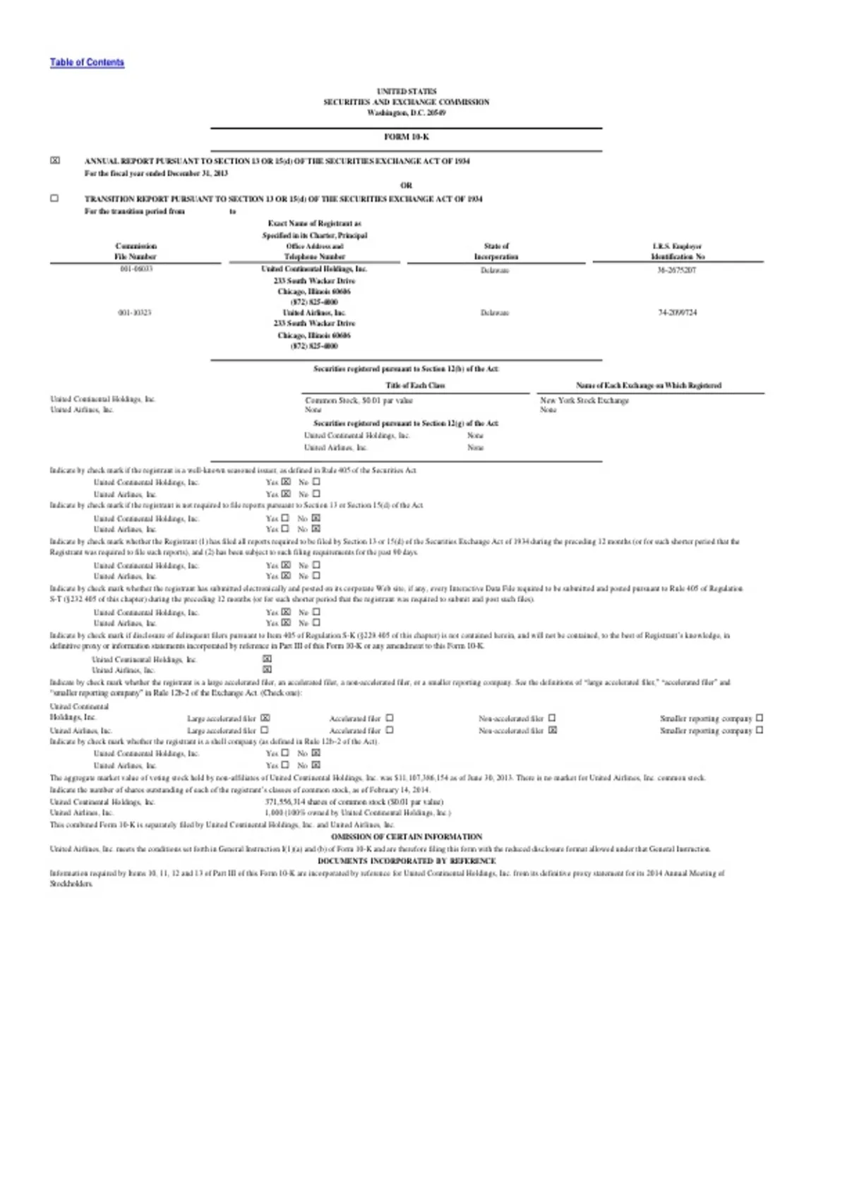 This combined Form 10-K is separately filed by United Continental Holdings, Inc. and United Airlines, Inc.