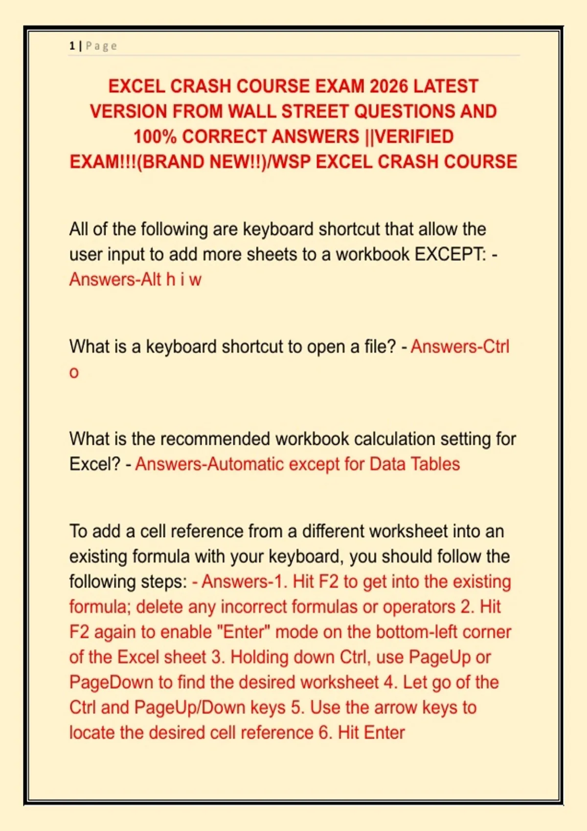 EXAM!!!(BRAND NEW!!)/WSP EXCEL CRASH COURSE