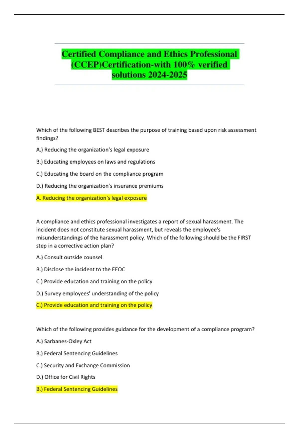 Certified Compliance and Ethics Professional (CCEP)Certification-with 100% verified solutions