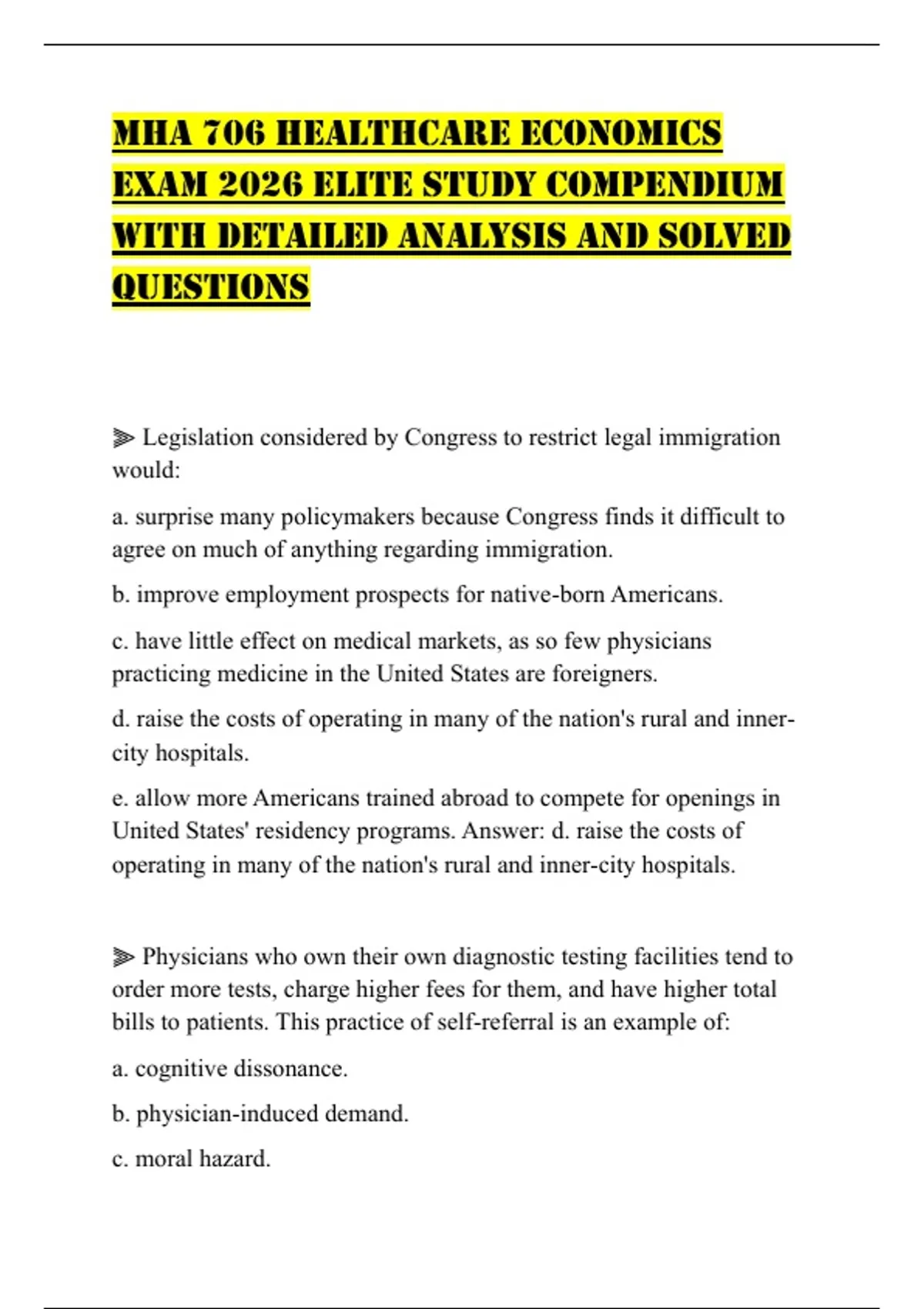 e. res ipsa loquitur. Answer: b. physician-induced demand.