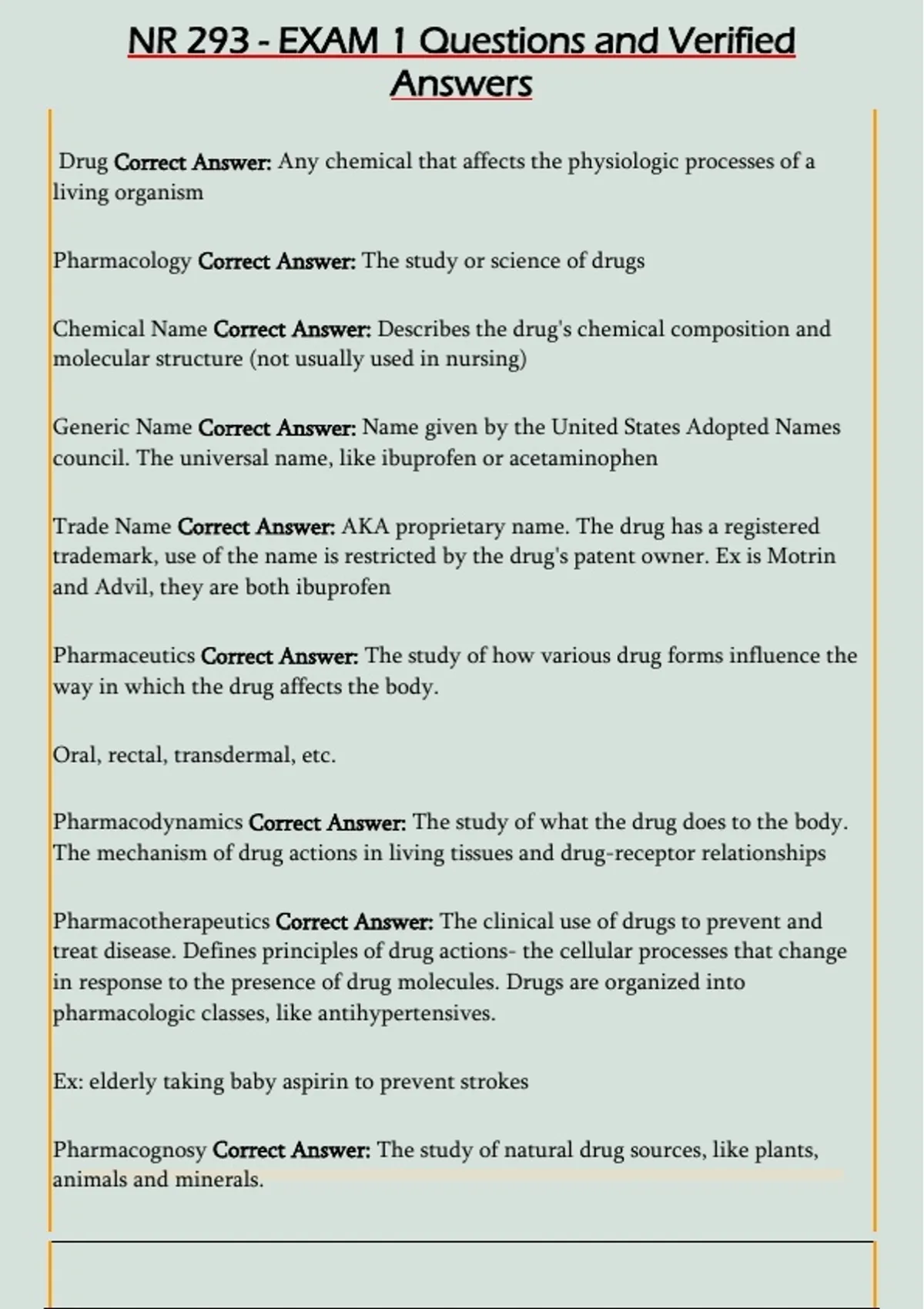 Drug Correct Answer: Any chemical that affects the physiologic processes of a