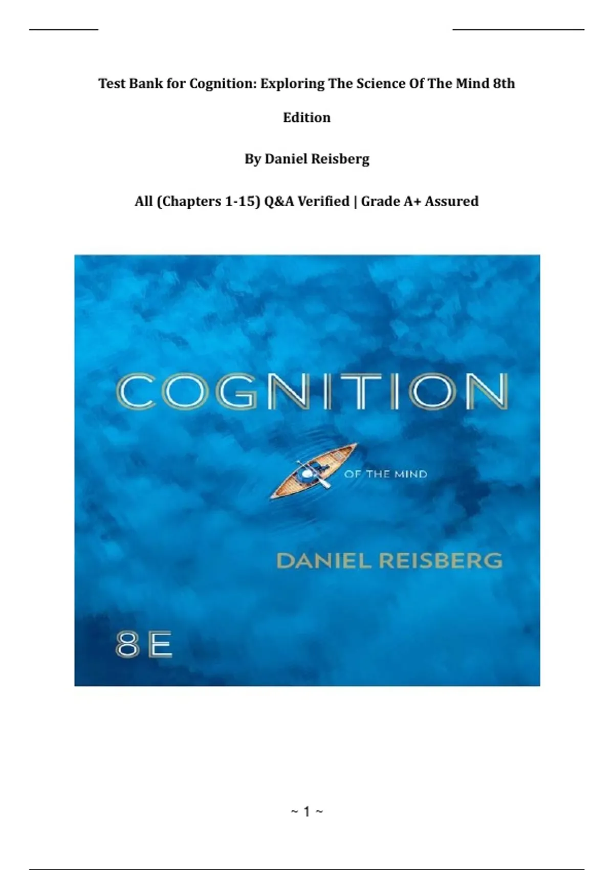 This document provides a complete test bank for Cognition: Exploring the Science of the Mind (8th Edition) by Daniel Reisberg, covering all chapters from 1 to 15. It includes verified questions and answers designed to support exam preparation and reinforce key concepts in cognitive psychology.