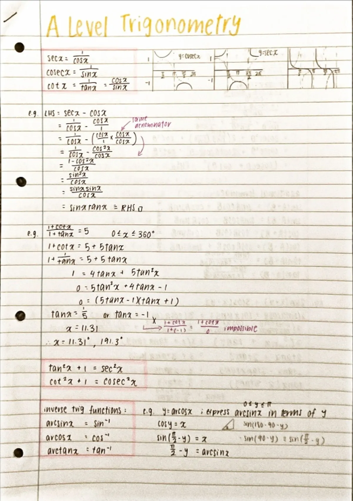 Here's a handwritten, nicely laid out summary of ALL the trigonometry topics (both Y1 and Y2 included) in A Level Mathematics! Hope that the concepts are easier to grasp when written out this way!