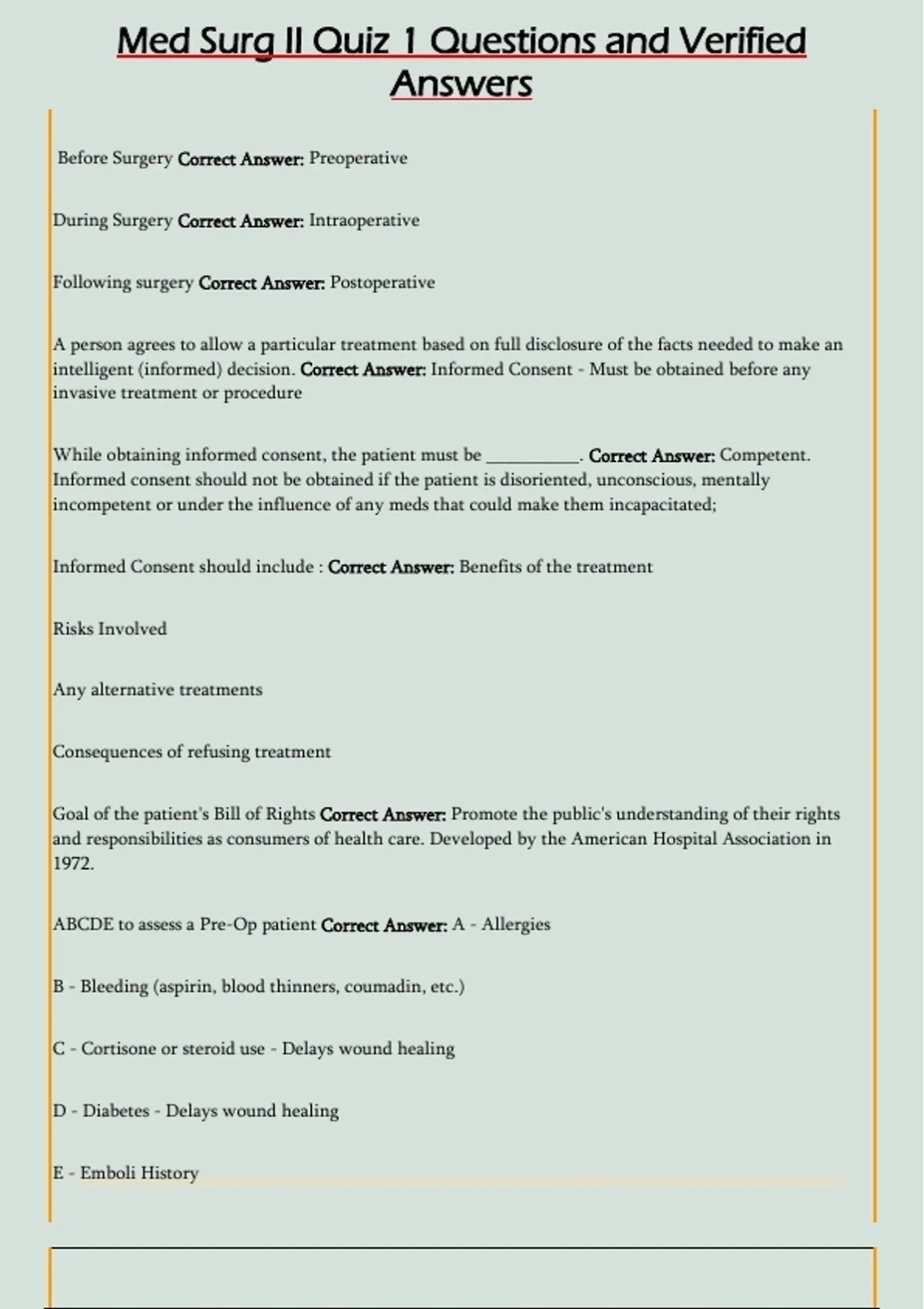 Before Surgery Correct Answer: Preoperative