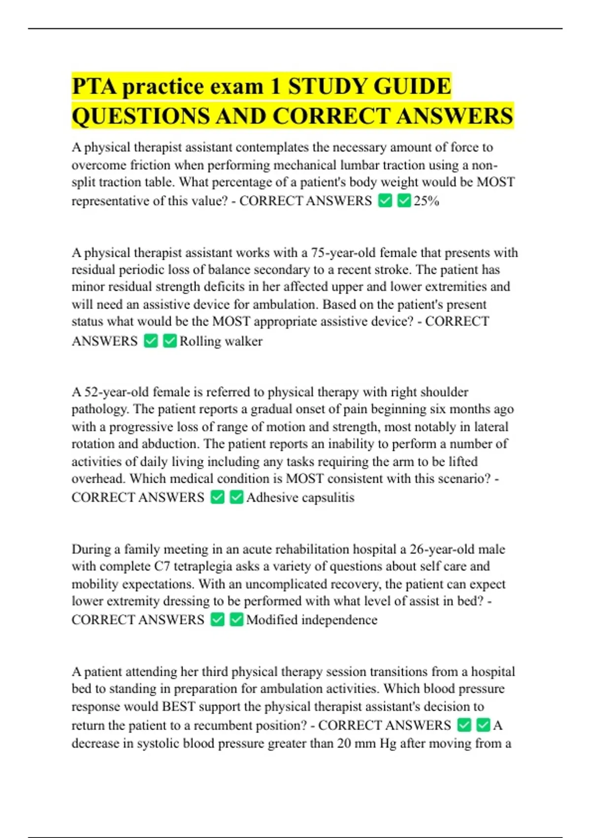 PTA practice exam 1 STUDY GUIDE QUESTIONS AND CORRECT ANSWERS