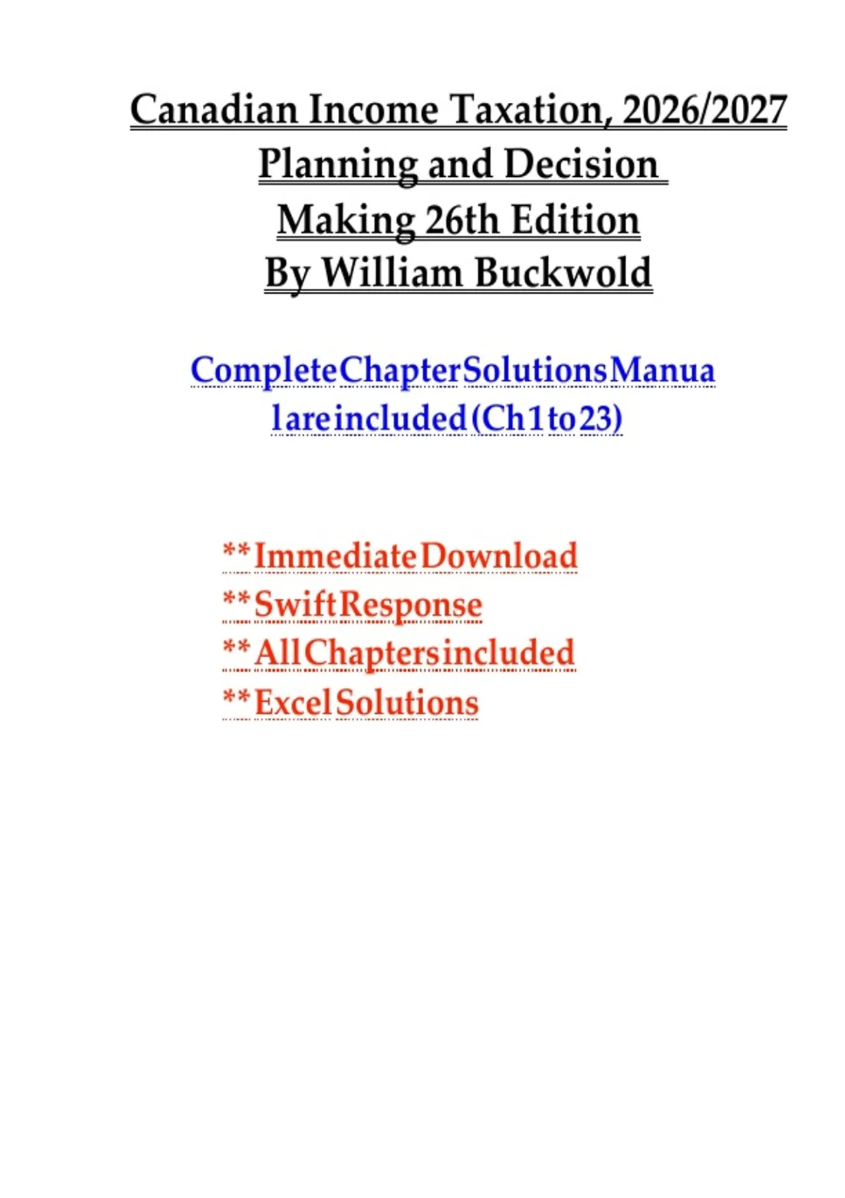 Solution manual for Canadian Income Taxation, 2026/2027: Planning and Decision Making 26th Edition By William BuckwoldSolution manual for Canadian Income Taxation, 2026/2027: Planning and Decision Making 26th Edition By William BuckwoldSolution manual for Canadian Income Taxation, 2026/2027: Planning and Decision Making 26th Edition By William BuckwoldSolution manual for Canadian Income Taxation, 2026/2027: Planning and Decision Making 26th Edition By William BuckwoldSolution manual for Canadian Income Taxation, 2026/2027: Planning and Decision Making 26th Edition By William BuckwoldSolution manual for Canadian Income Taxation, 2026/2027: Planning and Decision Making 26th Edition By William Buckwold