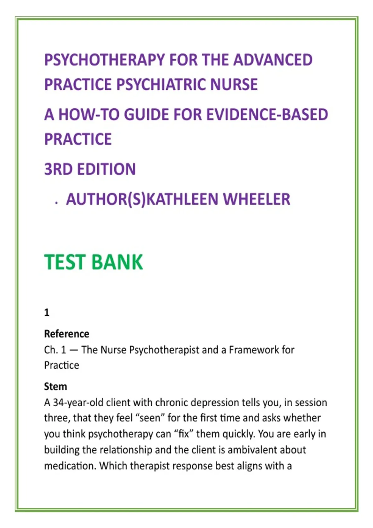 Wheeler, K. (2023). Psychotherapy for the Advanced Practice
