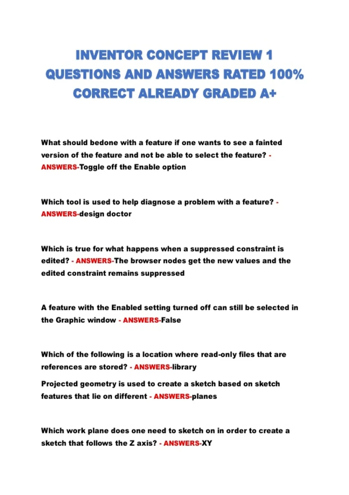 Inventor 1 Concept Review – Questions with Detailed Solutions | Graded A+