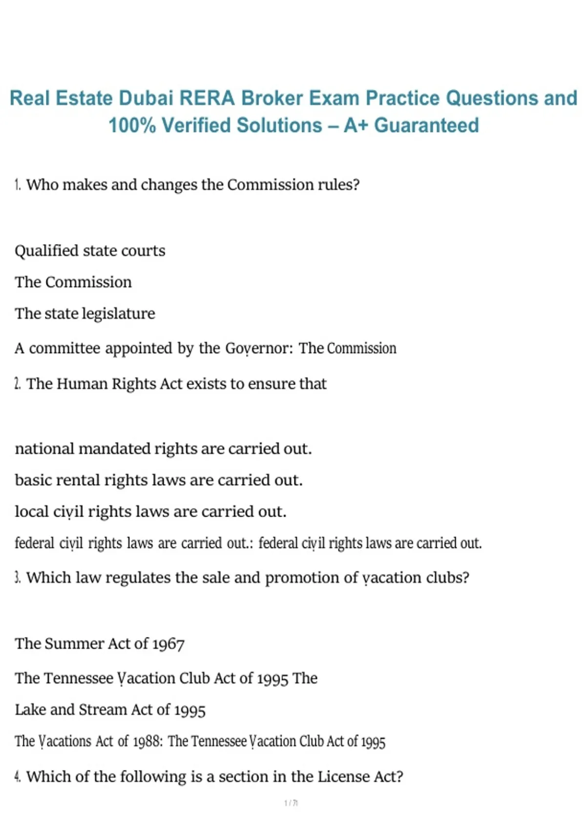 This document provides practice questions for the Dubai RERA Broker Exam, featuring fully verified and accurate solutions aligned with current exam standards. It covers essential real estate laws, RERA regulations, broker responsibilities, ethics, and transaction processes to support effective exam preparation for the 2026/2027 period.