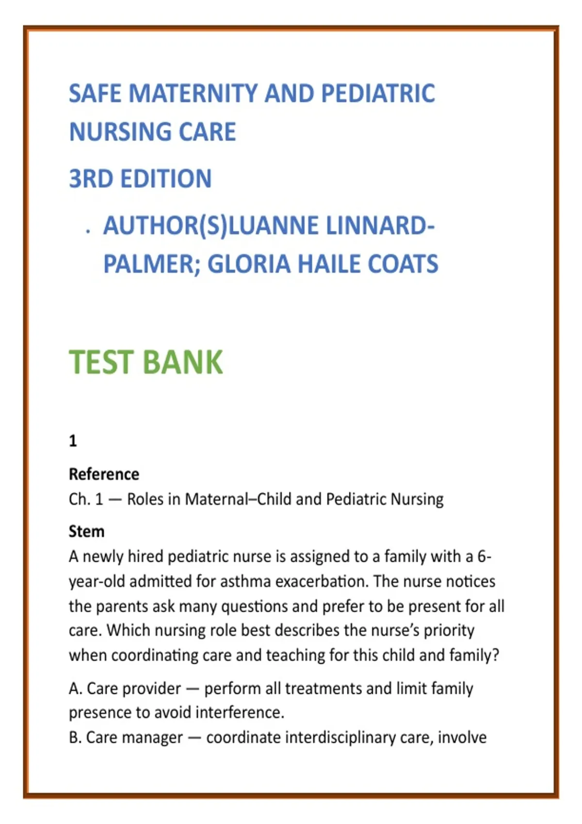 Ch. 1 — Roles in Maternal–Child and Pediatric Nursing